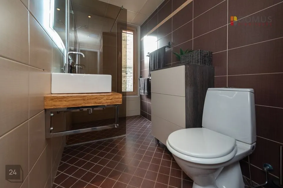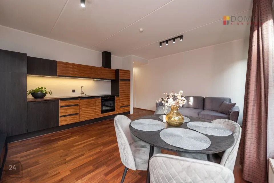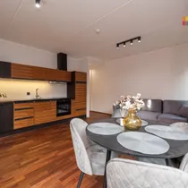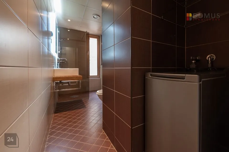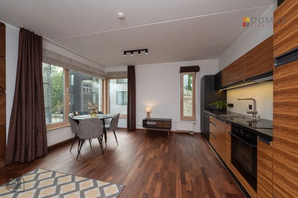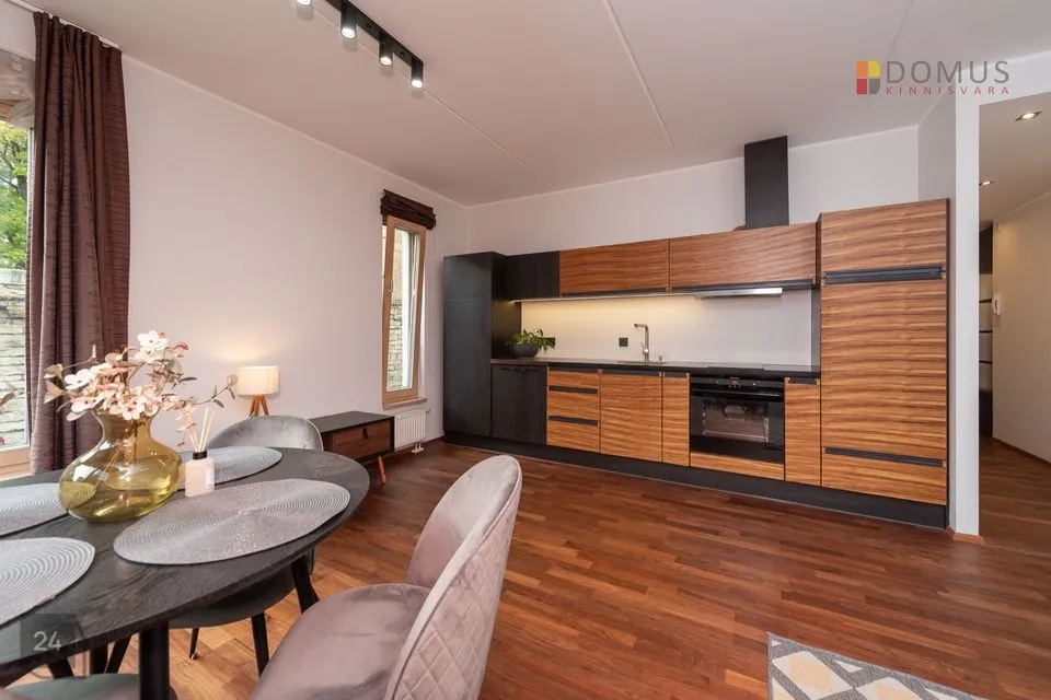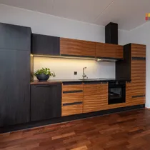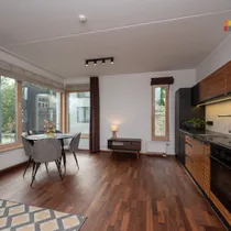Köögimööbel sisaldab Electrolux ahju, AEG pliiti, Electrolux õhupuhastit, Electrolux nõudepesumasinat ja integreeritud sügavkülmaosaga külmikut. Toasooja annab keskküte.