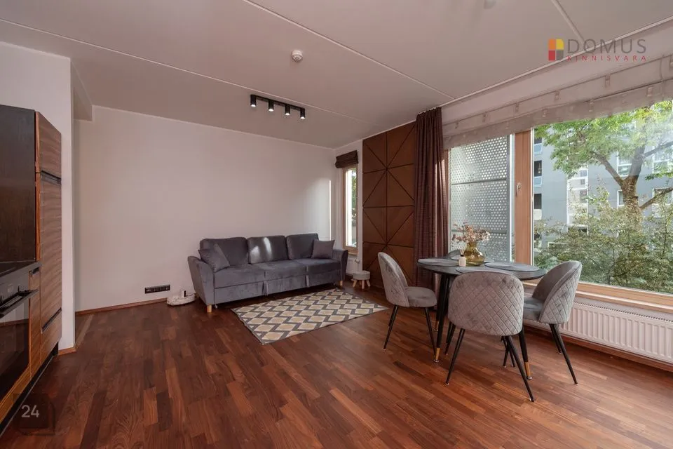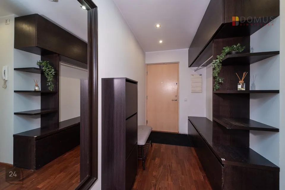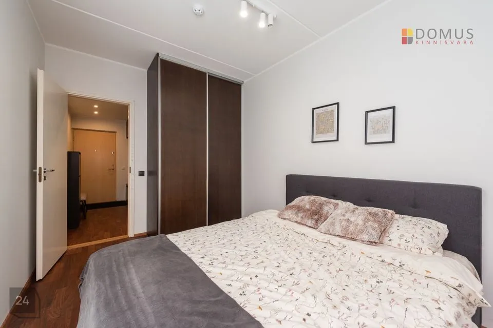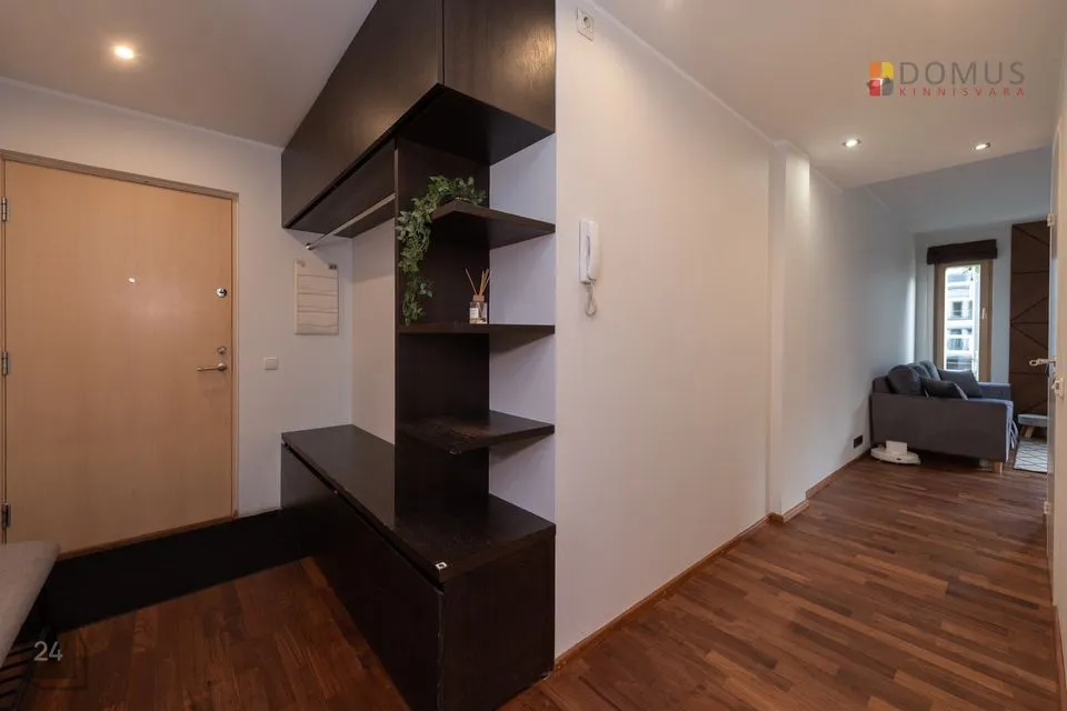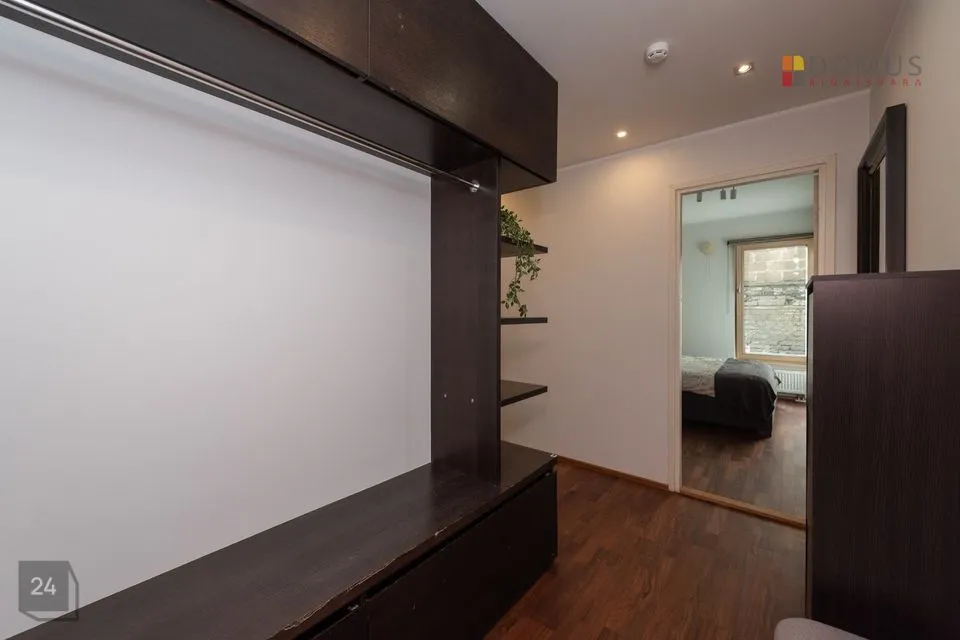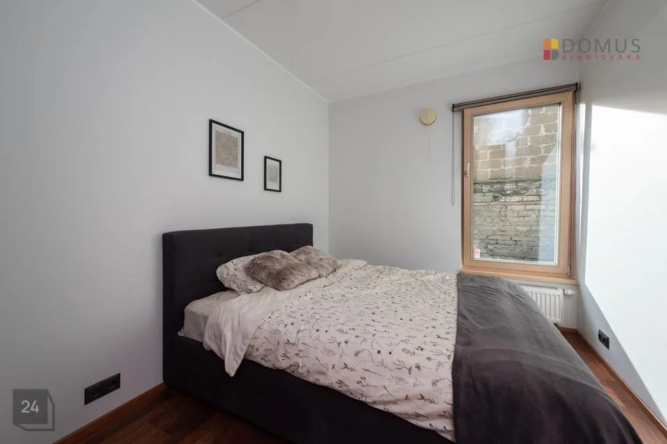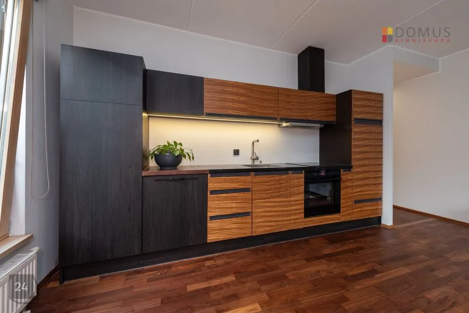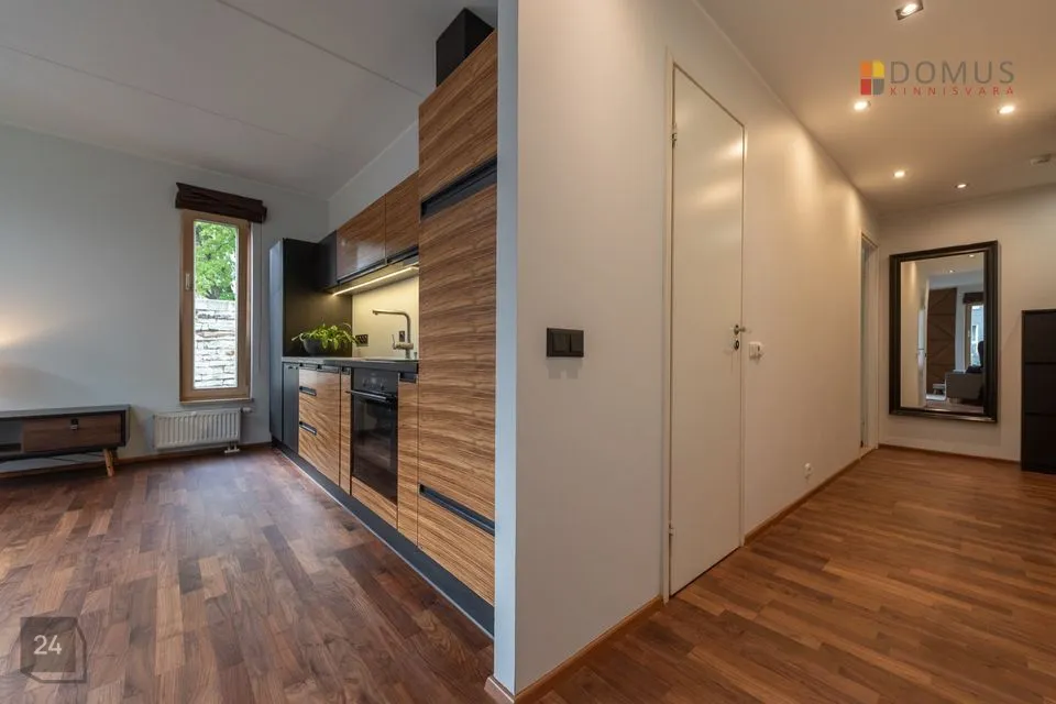 Korter koosneb esikust, magamistoast, suurest aknaga WC/duširuumist ja avatud köögiga elutoast. Korteri juurde ja hinna sisse kuulub maja all olev panipaik ja üks parkimiskoht maja all asuvas parklas. Korteri seinad ja laed on hiljuti värvitud ning õlitatud on põrandat kattev puitparkett. Duširuumi seinad ja põrand on plaaditud. Korteri aknad on puitraamide ja 2X klaaspaketiga.