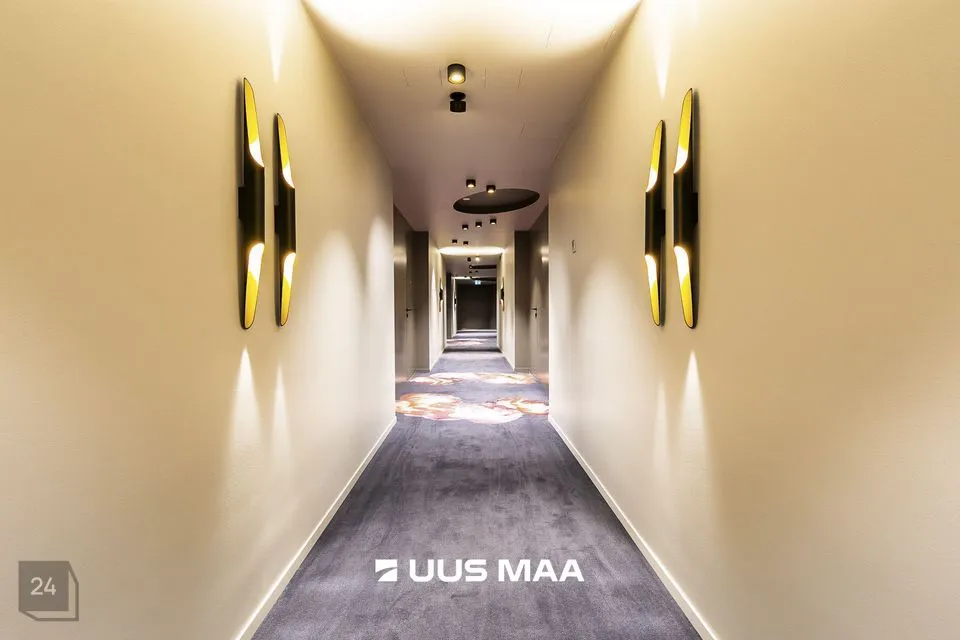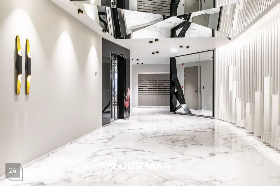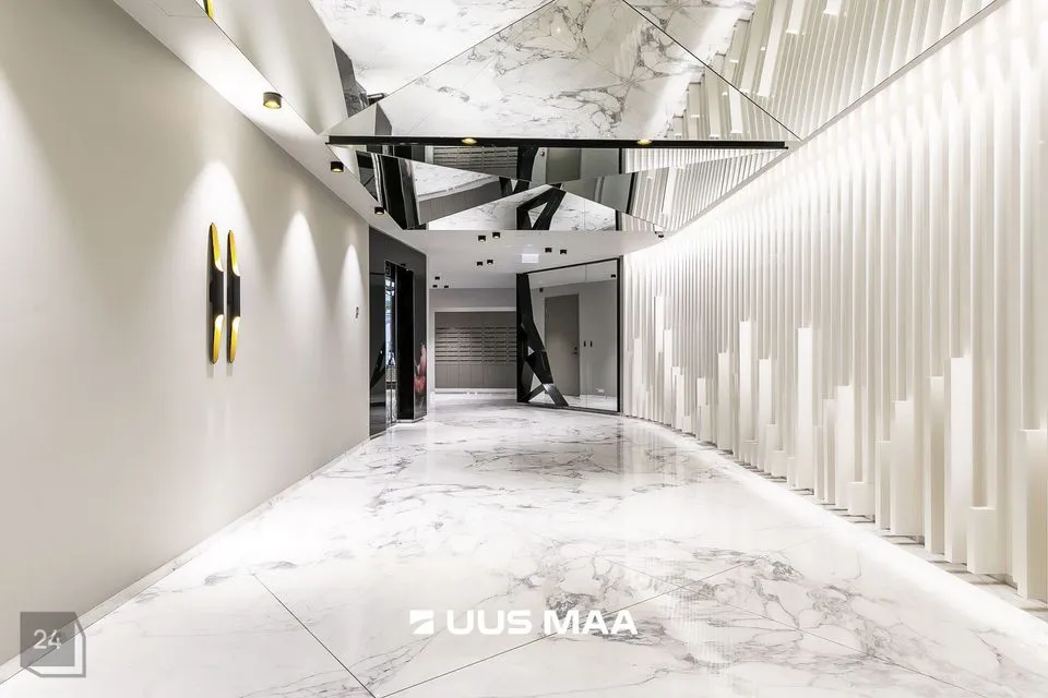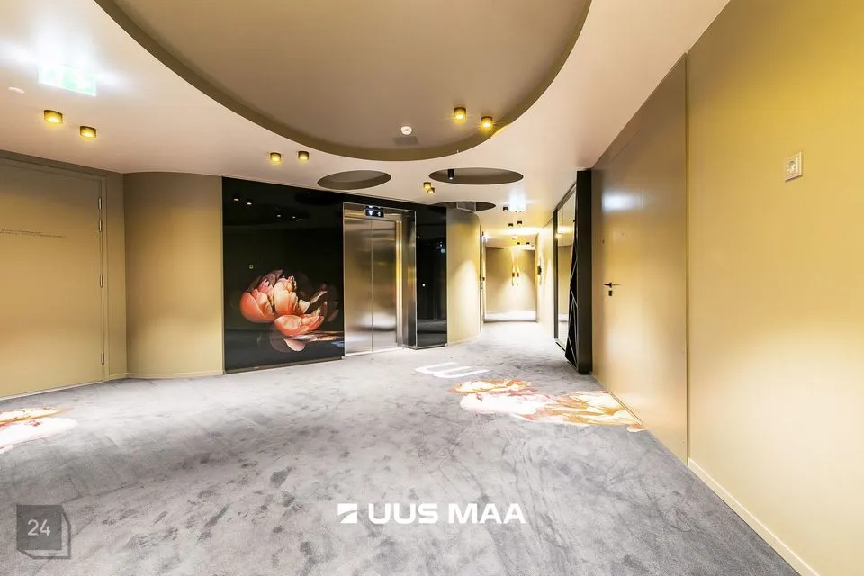 Korteris on garderoobikapiga ruumikas esik, avar avatud köögiga elutuba ja suur duširuum. Korter asub privaatselt luksusliku vaibaga kaetud 3. korruse koridori lõpus.