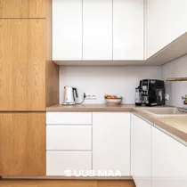 Köögis on integreeritud tehnika: induktsioonpliit, ahi, külmkapp, nõudepesumasin, kubu. Vannitoas põrandaküte.