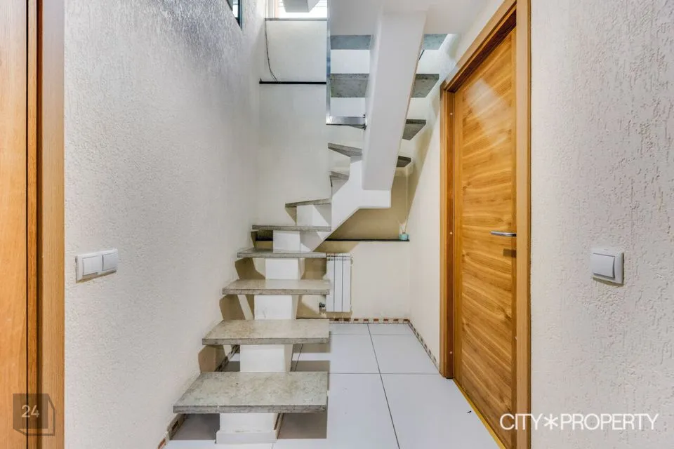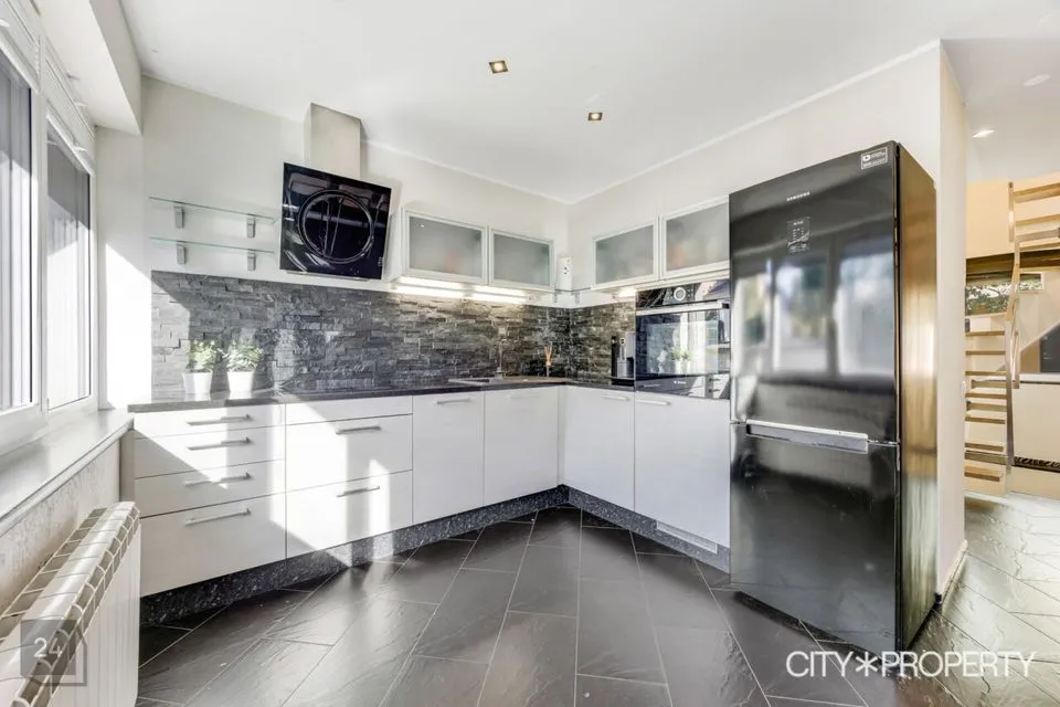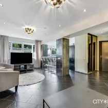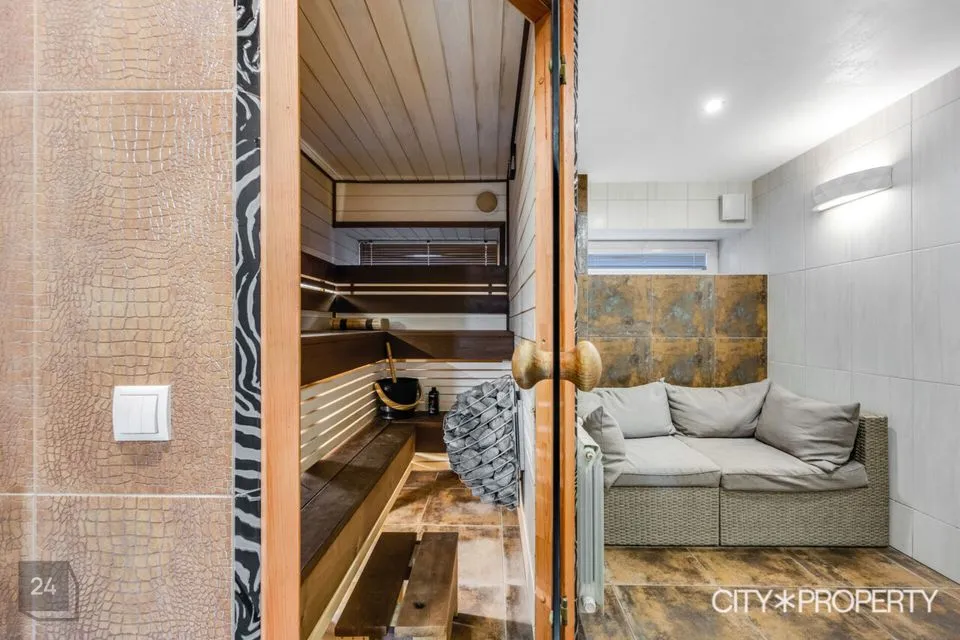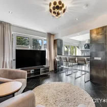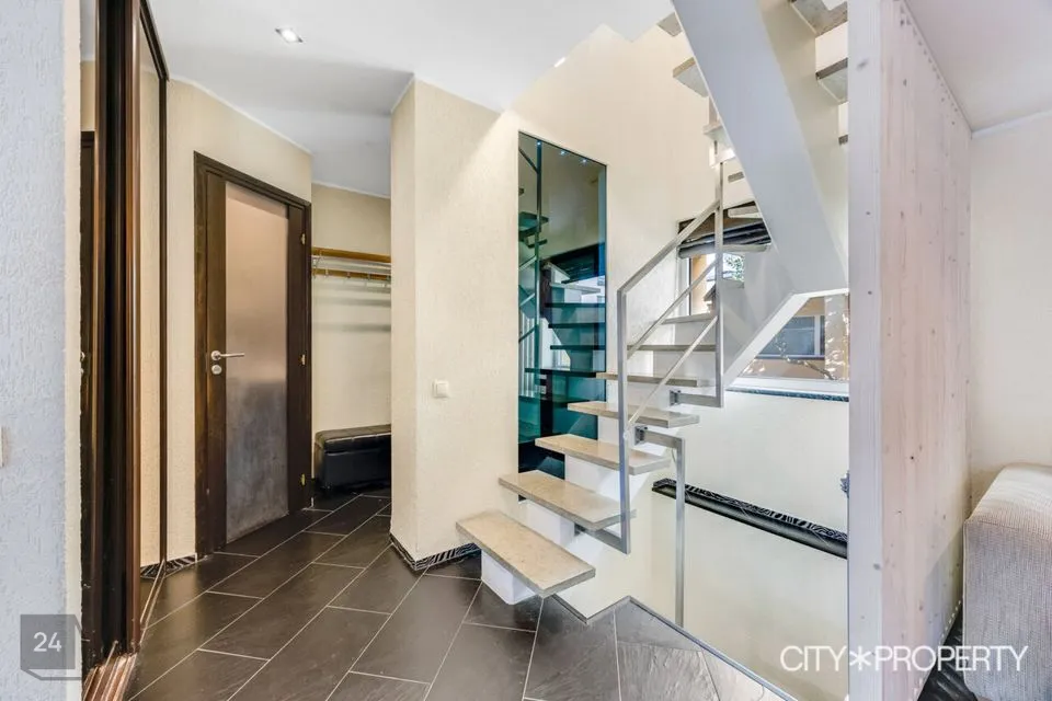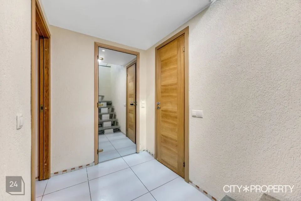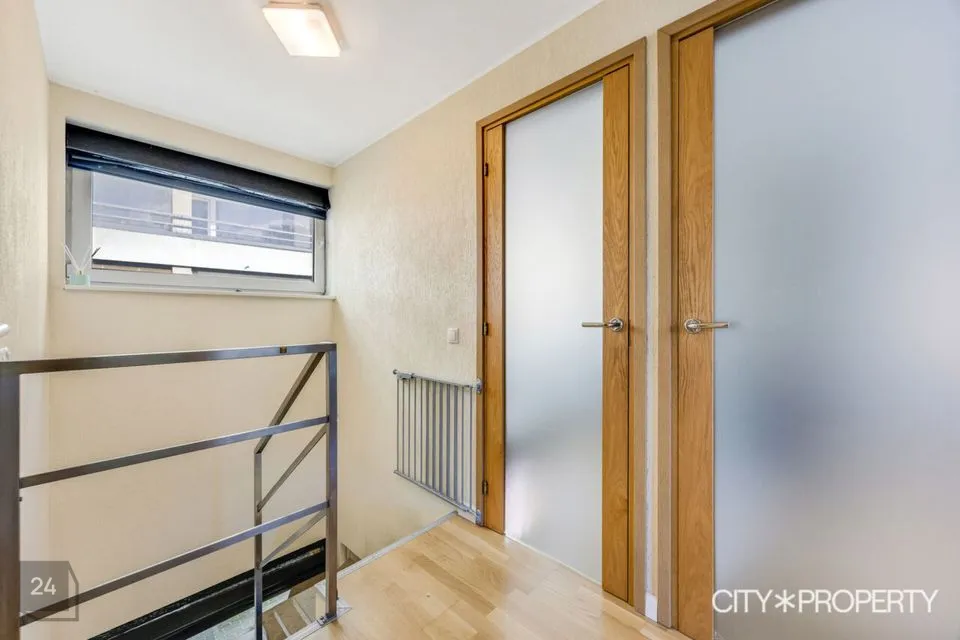 Põhikorruse ja soklikorruse ruumide põrandatel on must kiviplaat, ülakorruse tubades on maas tammeparkett. Siseuste viimistlus on kombineeritud tammespooni ja mattklaasiga. Kõigi sanruumide põrandatel on elektriline mugavusküte, mis tagab sooja jalgealuse aastaringselt. Korter on olnud kasutusel Air BNB üüripinnana ja on vastavalt sisustatud. Kogu nähaolev mööbel ja sisustus sisalduvad müügihinnas.