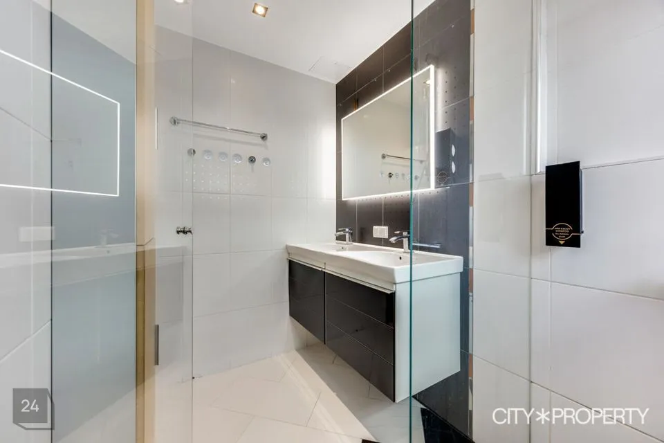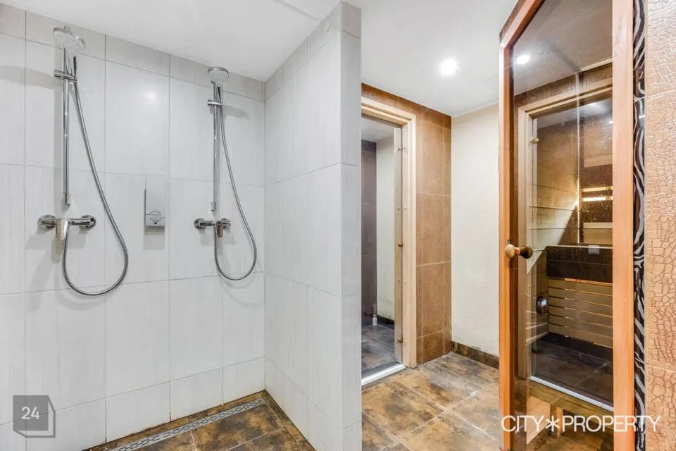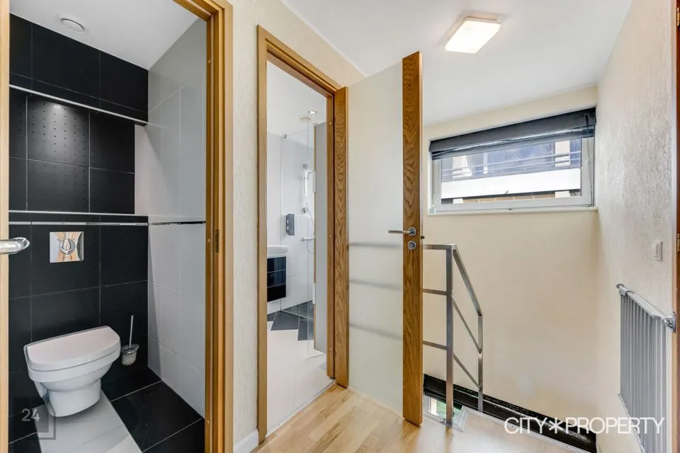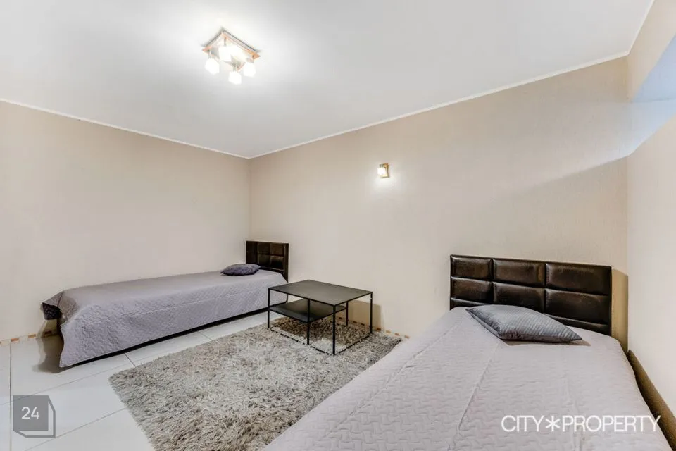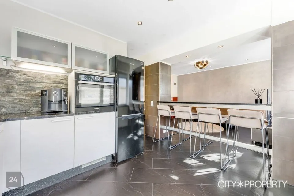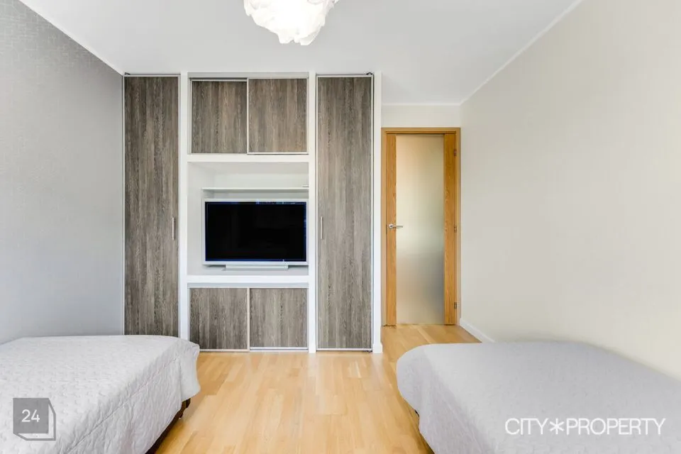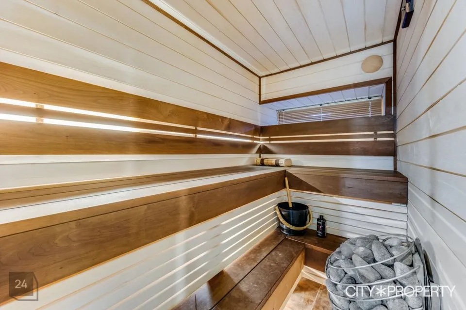 Põhikorruse ja soklikorruse ruumide põrandatel on must kiviplaat, ülakorruse tubades on maas tammeparkett. Siseuste viimistlus on kombineeritud tammespooni ja mattklaasiga. Kõigi sanruumide põrandatel on elektriline mugavusküte, mis tagab sooja jalgealuse aastaringselt. Korter on olnud kasutusel Air BNB üüripinnana ja on vastavalt sisustatud. Kogu nähaolev mööbel ja sisustus sisalduvad müügihinnas.