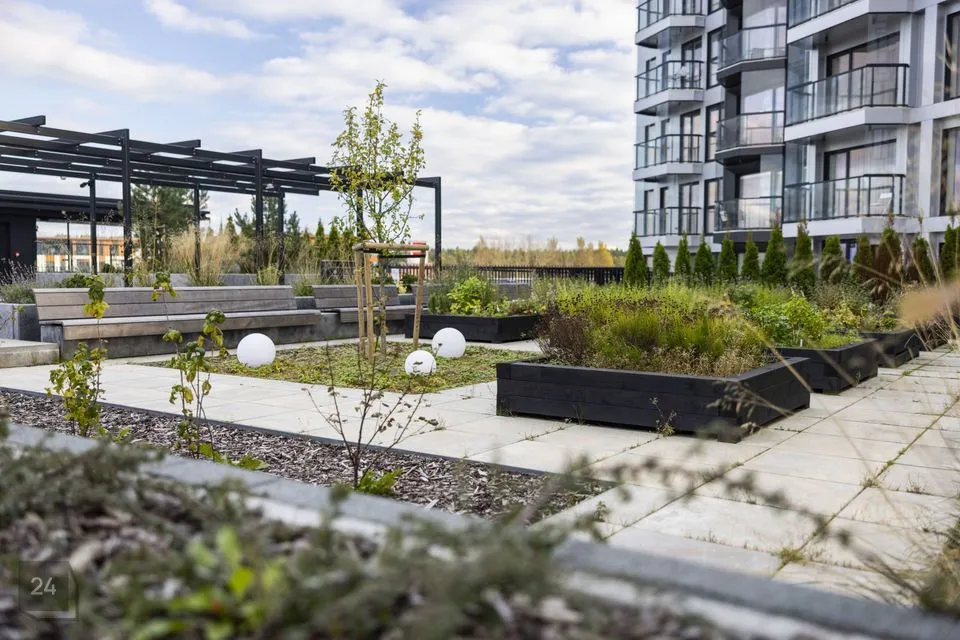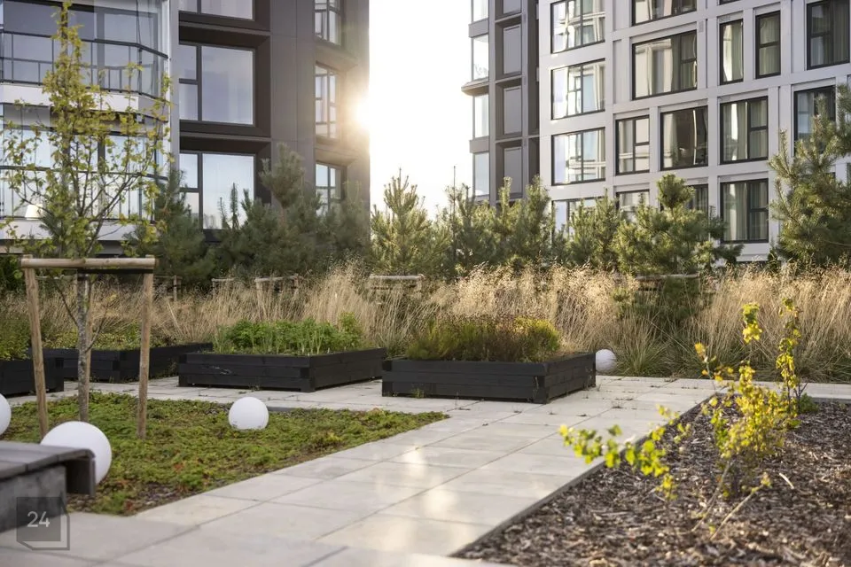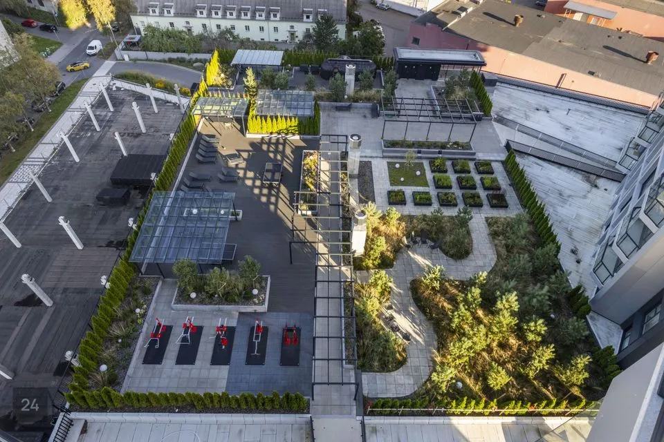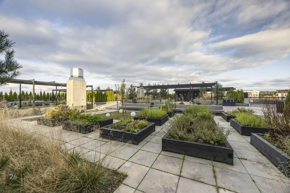 Hoone sisehoovi, parkimismaja katusele, on rajatud maastikuarhitektide poolt loodud 1500 m² suurune, rikkalikult püsitaimede, hekkide ja puudega haljastatud katuseaed kus on: