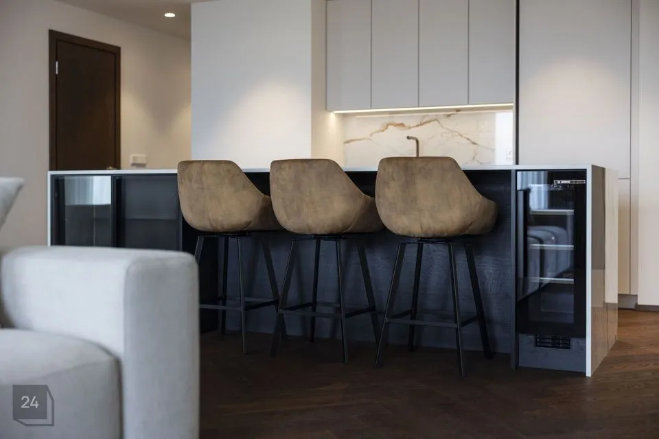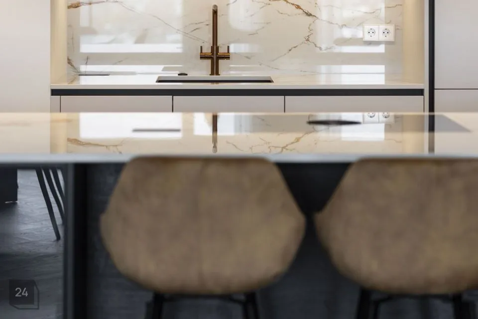 Köögimööbel on valitud hinnatud Schmidt kaubamärgilt, marmorstiilis tööpindade ning eksklusiivse Bosch kodutehnikaga, sealhulgas XXL-suuruses külmkapp ja integreeritud veinikülmik.