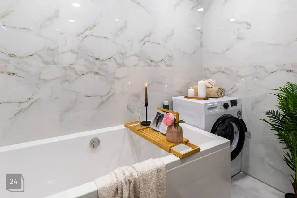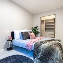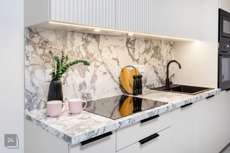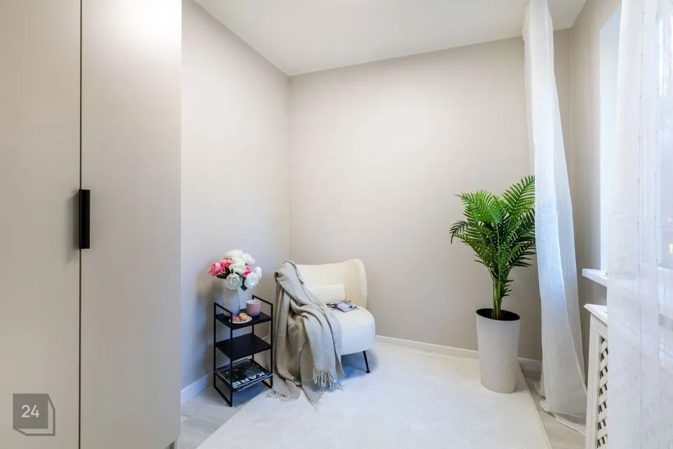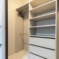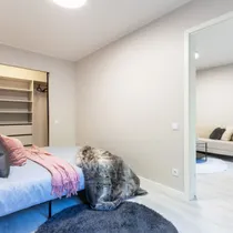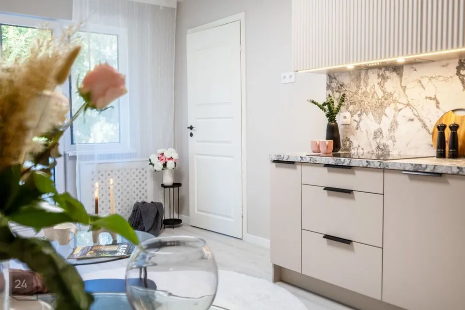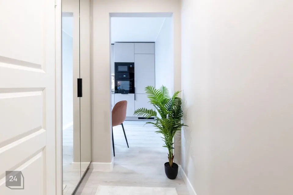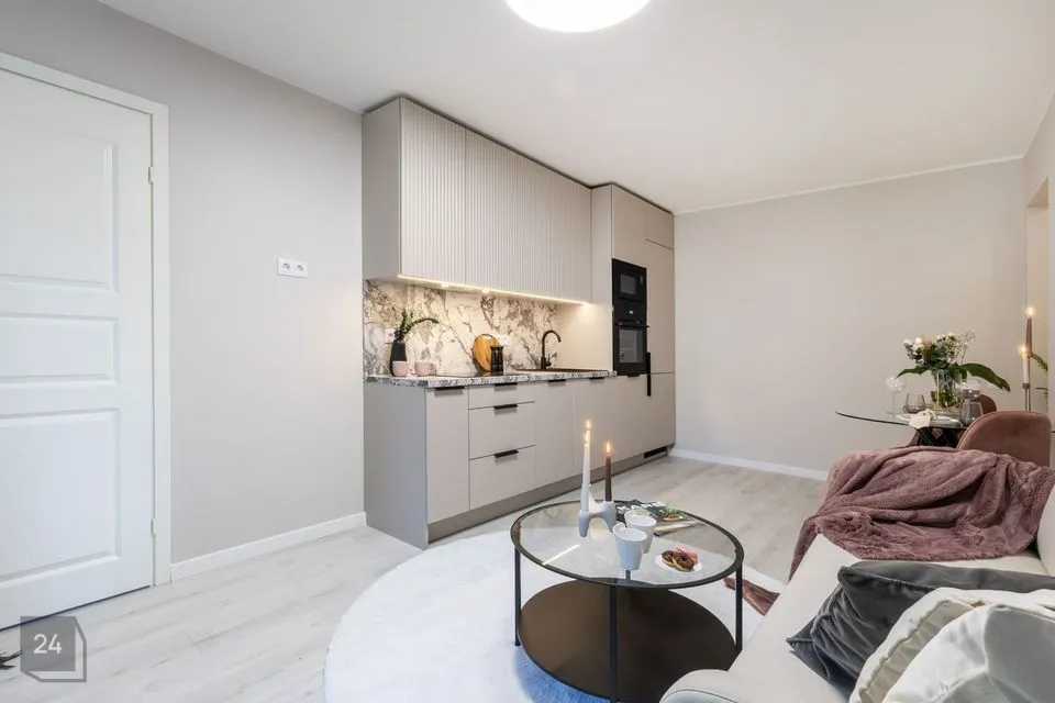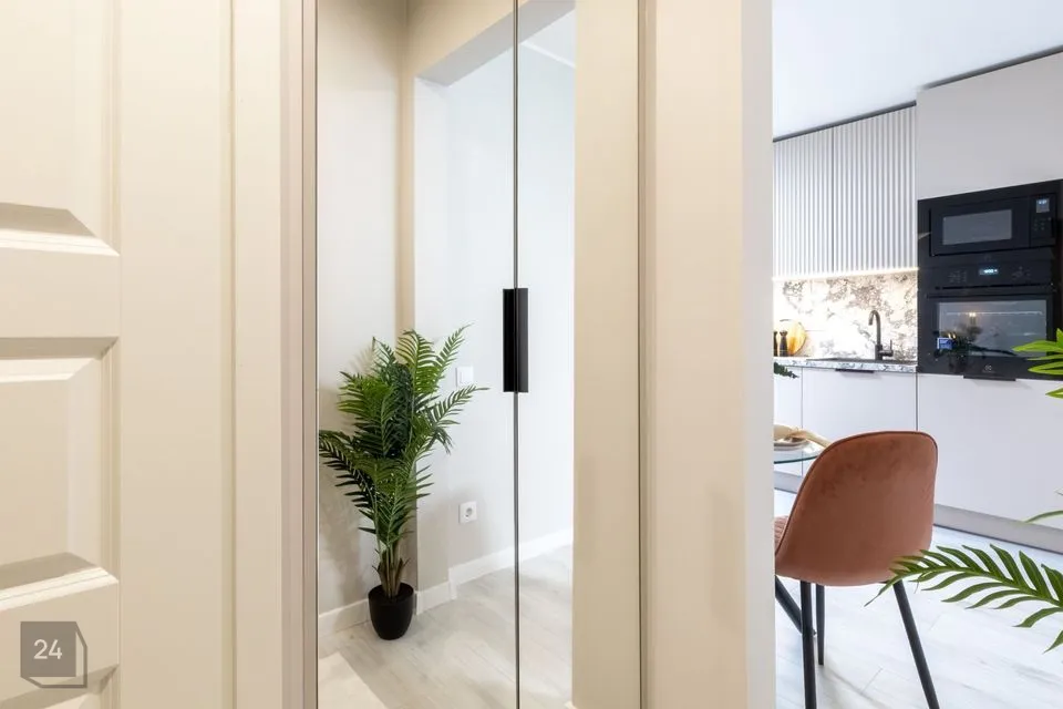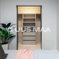 Selles maitsekalt disainitud korteris on kõikides ruumides eritellimusel valmistatud kvaliteetne mööbel, mis on sobitatud vastavalt ruumi mõõtmetele. Köögis on integreeritud mööbel ja tehnika ning tubades ja esikus sisseehitatud maast laeni kapid. Korteris on LED-valgustid.