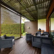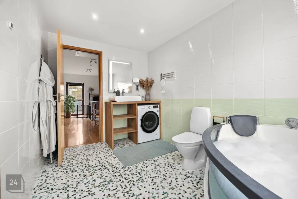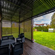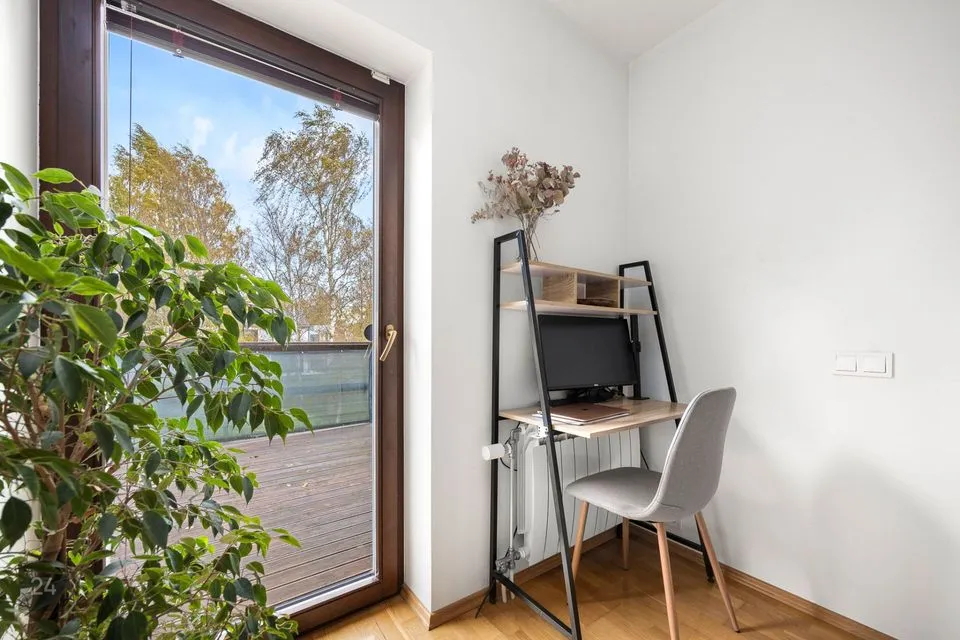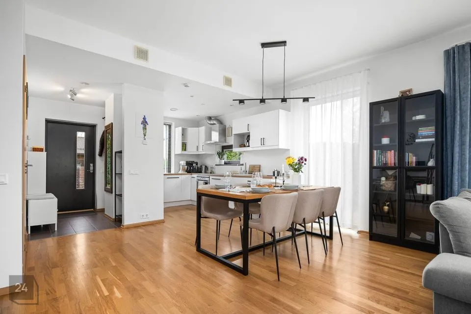 Elutoast on pääs terrassile (ca 29m2) ja tagahoovi. Hekiga on muudetud hooviala privaatseks ja turvaliseks. Ruumi on kasvuhoonele, mängumajale, ringi jooksmiseks ning ka kaunile kasele, mis sügisel värvi lisab. Pikkadel suveõhtutel paitab loojuv päike ka hooviala ja terrassi.
