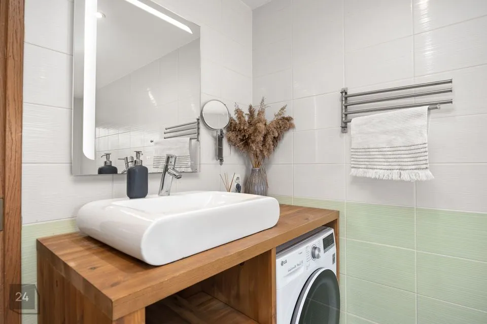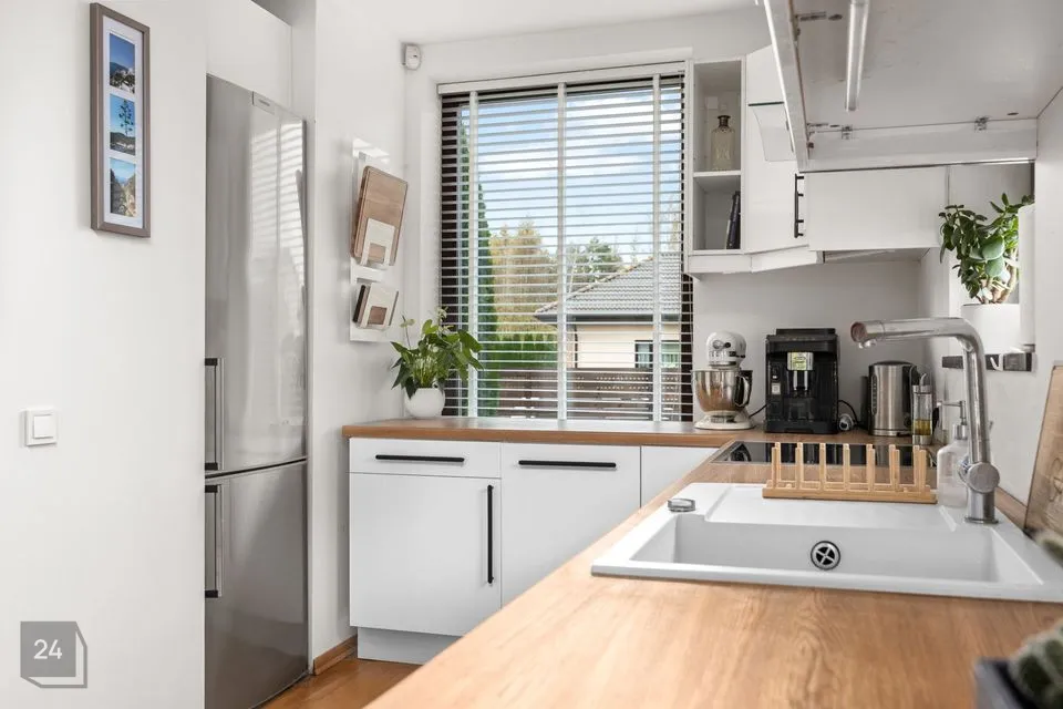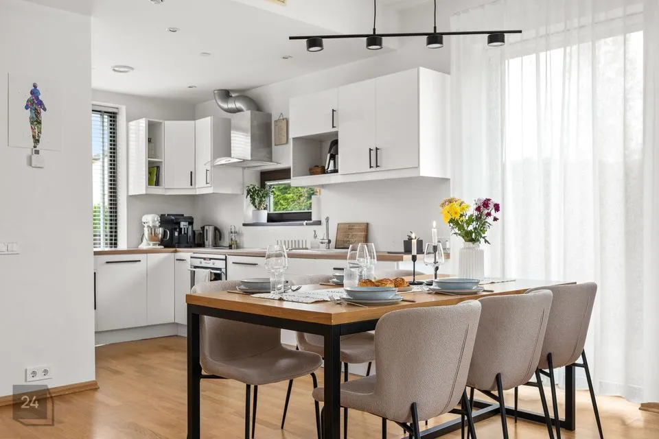 Köögiala muudab eriliseks suur aken ja palju töötasapinda. Olemas on kõik vajalik kodutehnika ja palju kapiruumi köögitarvikute ja serviiside jaoks.