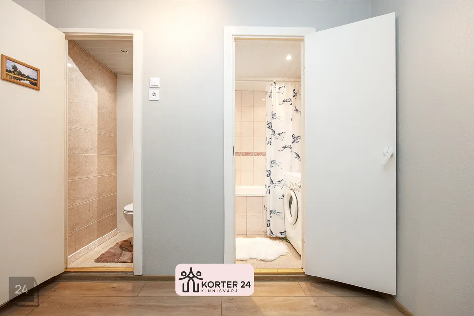 Tubades, esikus ja köögis on laminaatparkett. Vannituba ja WC on plaaditud.