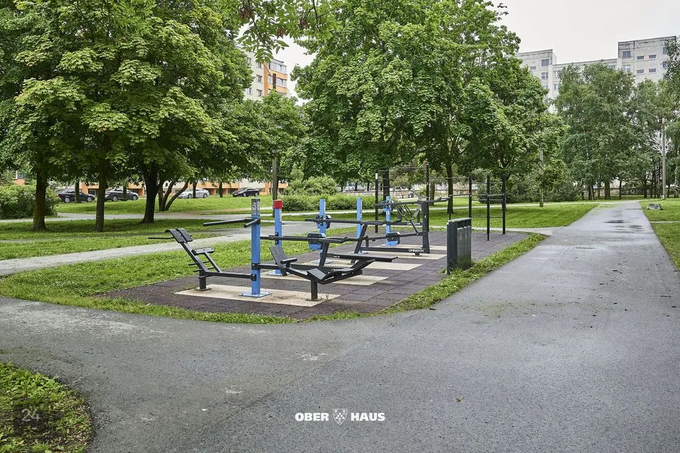 Maja taha jääb haljastatud puhkeala koos mänguväljaku ja välijõusaaliga.