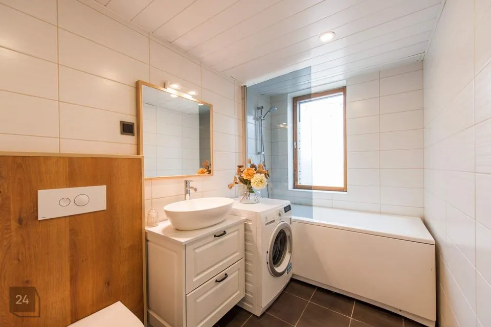 Tegemist on väga mugava ning praktilise planeeringuga. Maitsekalt siseviimistletud korter on väga heas seisukorras. Köök on varustatud kvaliteetse mööbli ning mugava integreeritud tehnikaga (keraamiline pliidiplaat, ahi, külmkapp, nõudepesumasin, õhupuhasti). Vannituba on hästi planeeritud paigutusega, mahutades nii vanni, kui ka pesumasinat. Tubade põrandatel on kvaliteetne tamme laudparkett. Köögi, vannitoa ja esiku põrandad on plaaditud. Siseviimistlus on heledates toonides, mis võimendavad avarust ja valgusküllasust. Paigaldatud Soome tüüpi aknad on varustatud kolmekordse puitalumiiniumklaaspaketiga parema müraisolatsiooni tagamiseks.