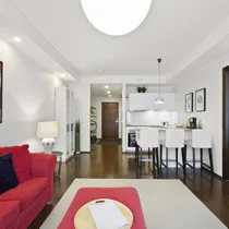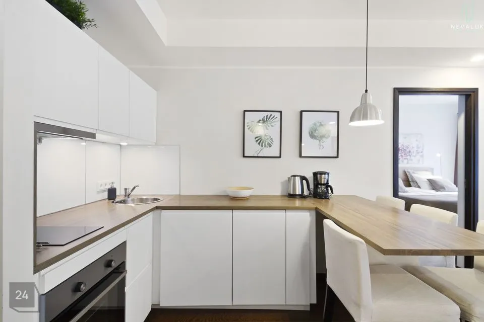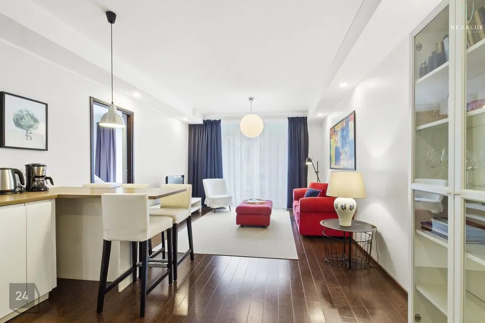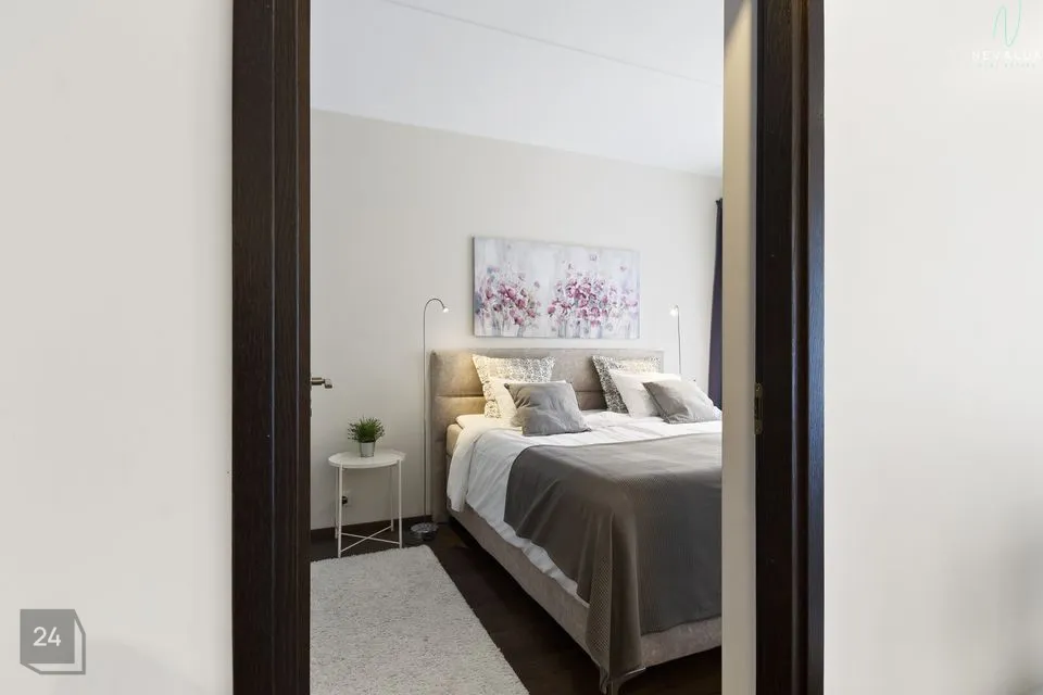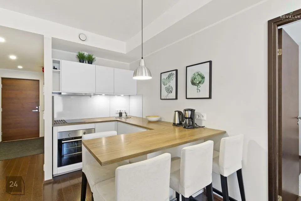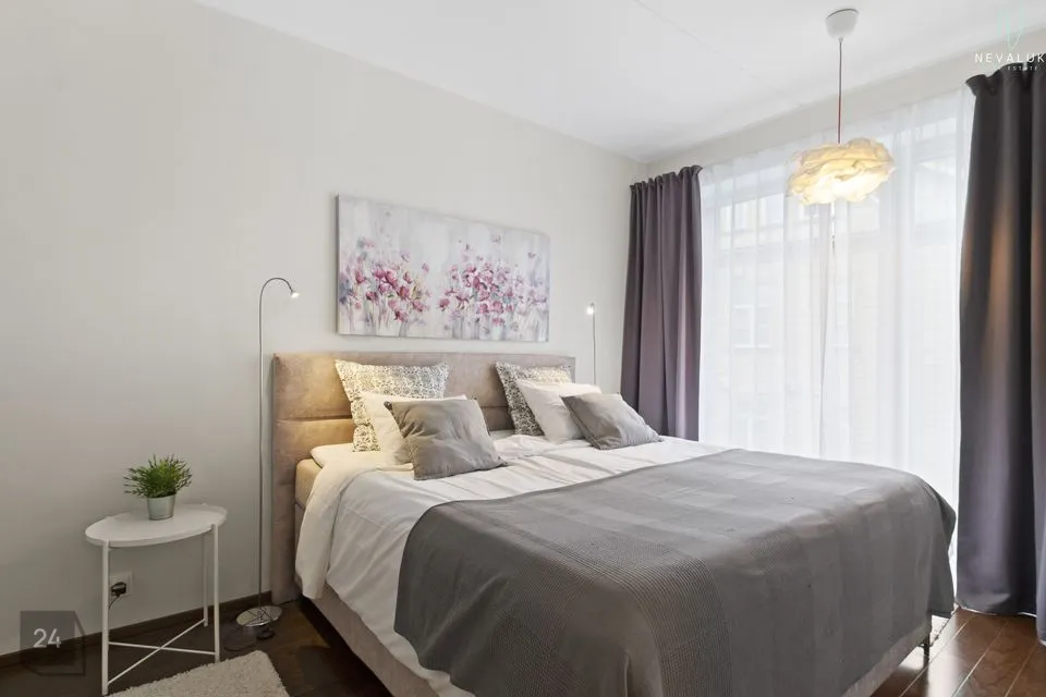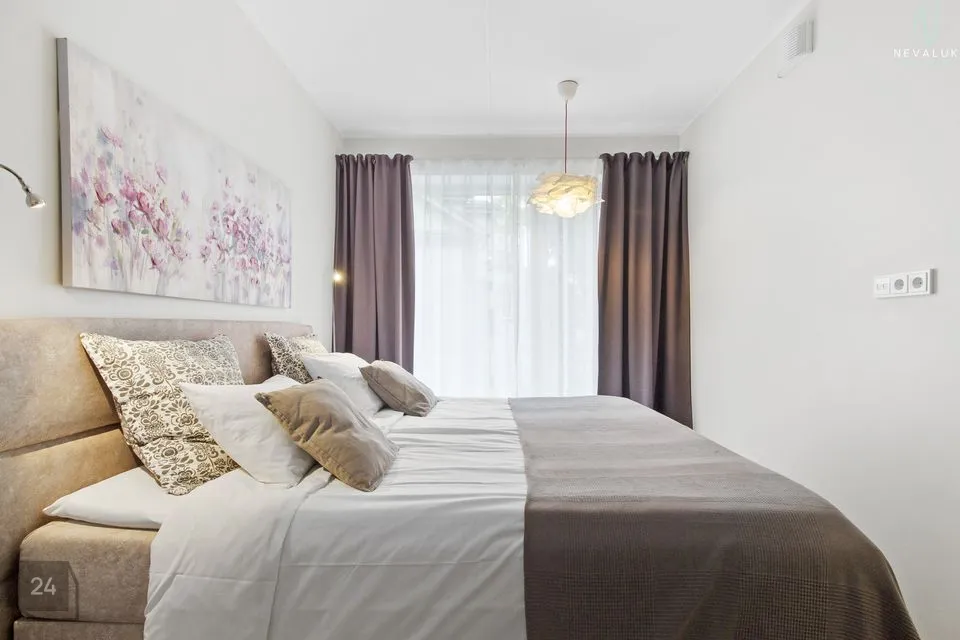 Korterit iseloomustavad kõrged laed, suured aknad ja valgusküllane atmosfäär, mis loob rahuliku ja hubase meeleolu.