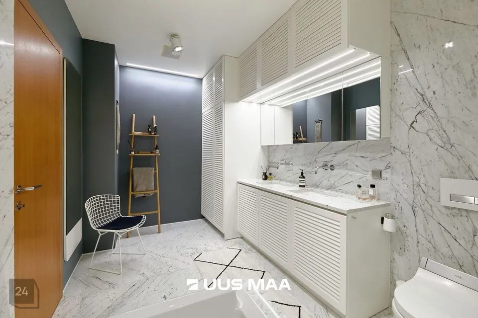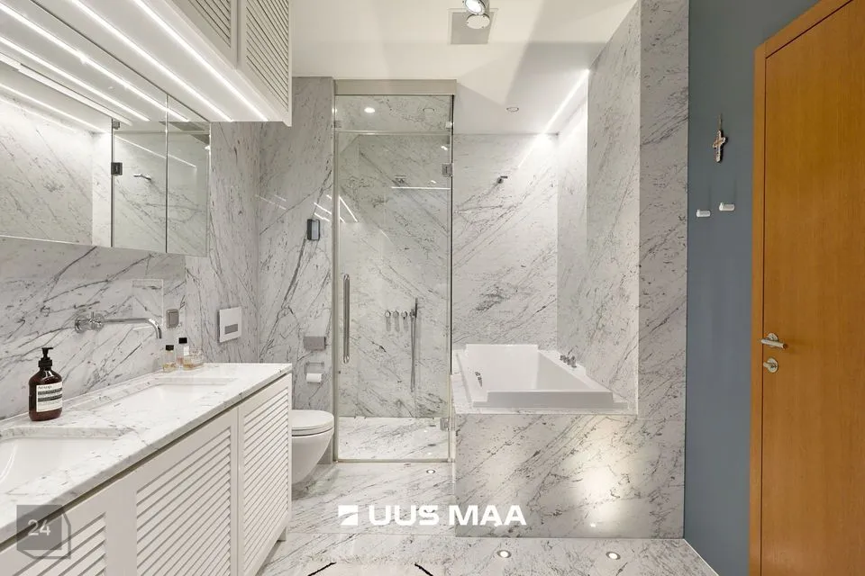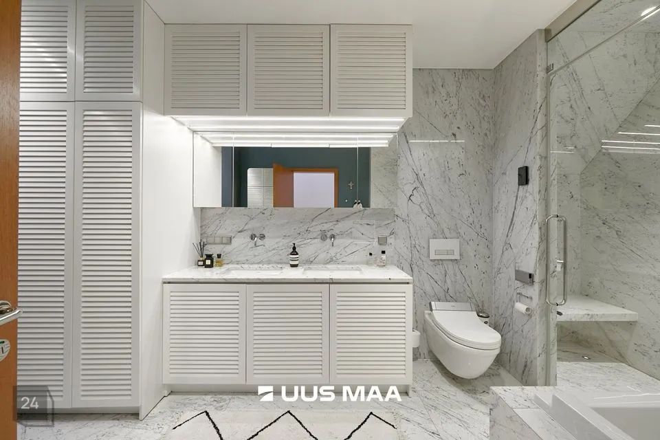 Luksuslik ning samas hubane kodu on viimistletud kvaliteetsete materjalidega. Põrandat katab tammelaud ja vannitoas on suursugused marmorplaadid.