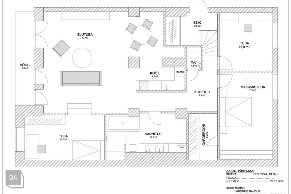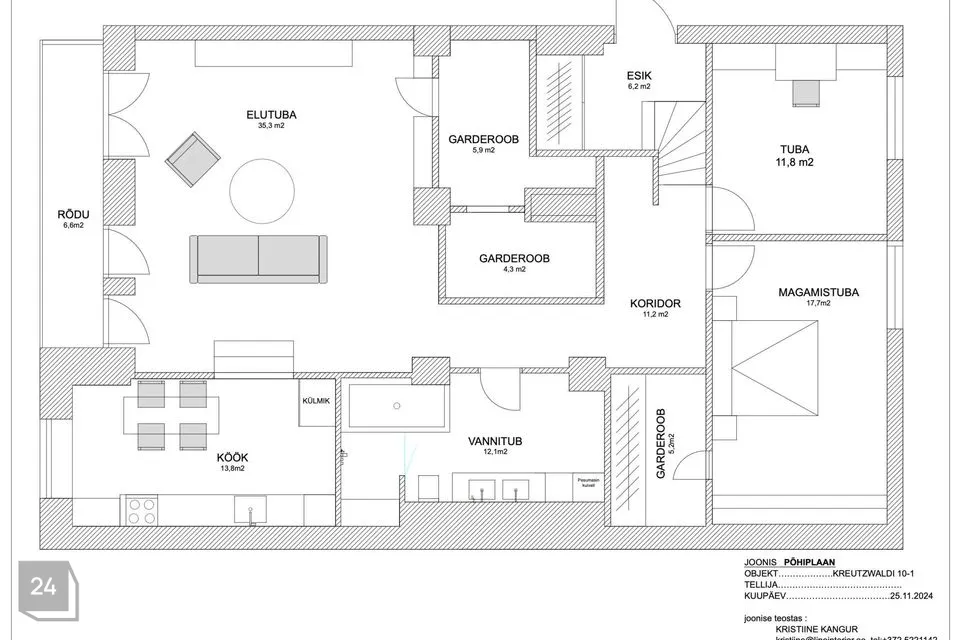 Korteri suurus on 127,3 m2 ja rõdu 10 m2.