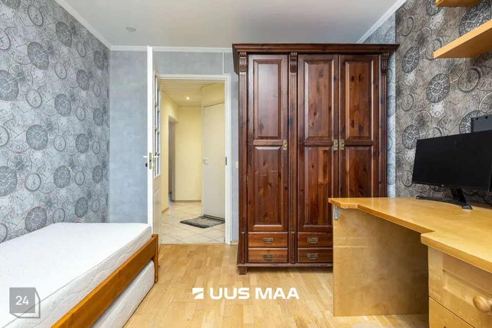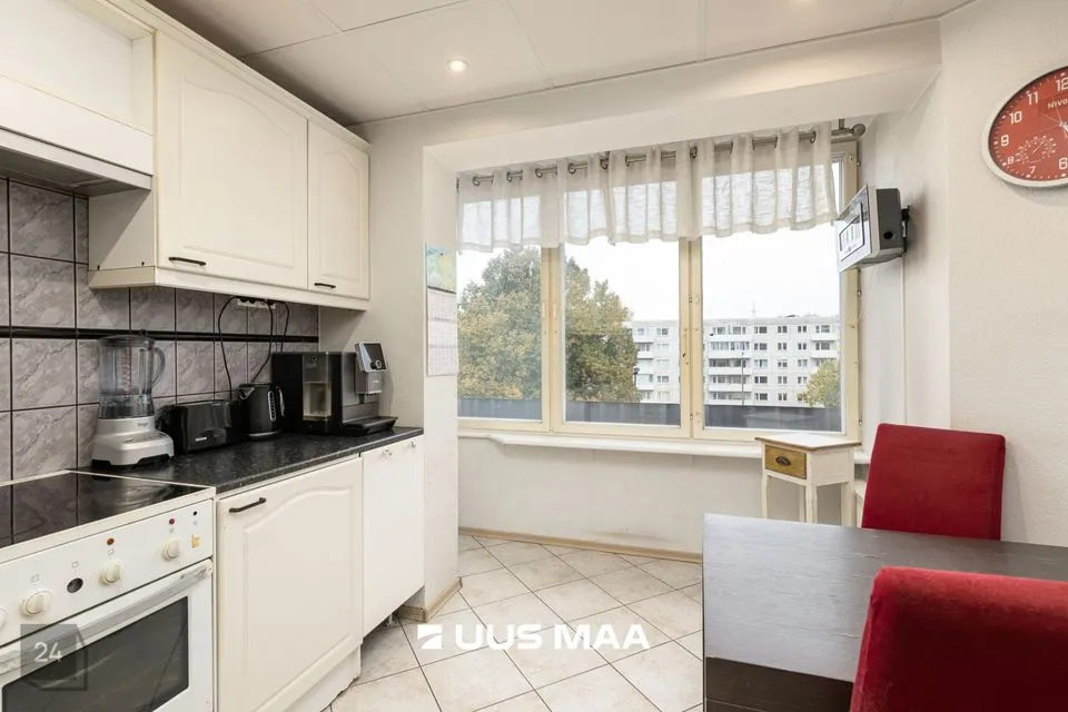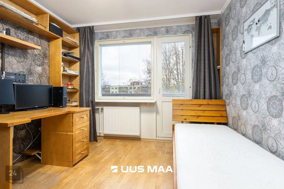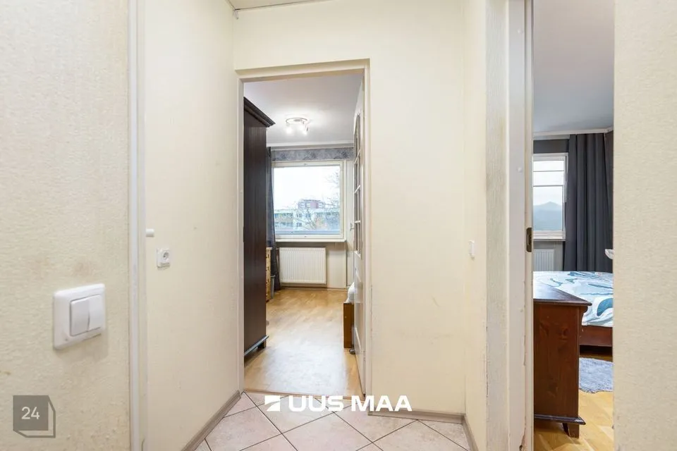 Avar 3-toaline korter on läbi maja planeeringuga. Suures esikus on sisse ehitatud garderoobisüsteem. Avar köök on klaasitud rõdudega. Otse liikudes on suur elutuba ja paremale poole jäävad kaks magamistuba, millest üks pikeneb rõduga. Koridorist pääseb ruumikasse wc/vannituppa. Korter vajab remonti!