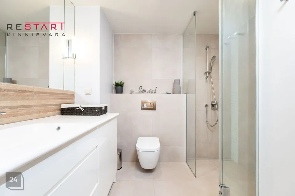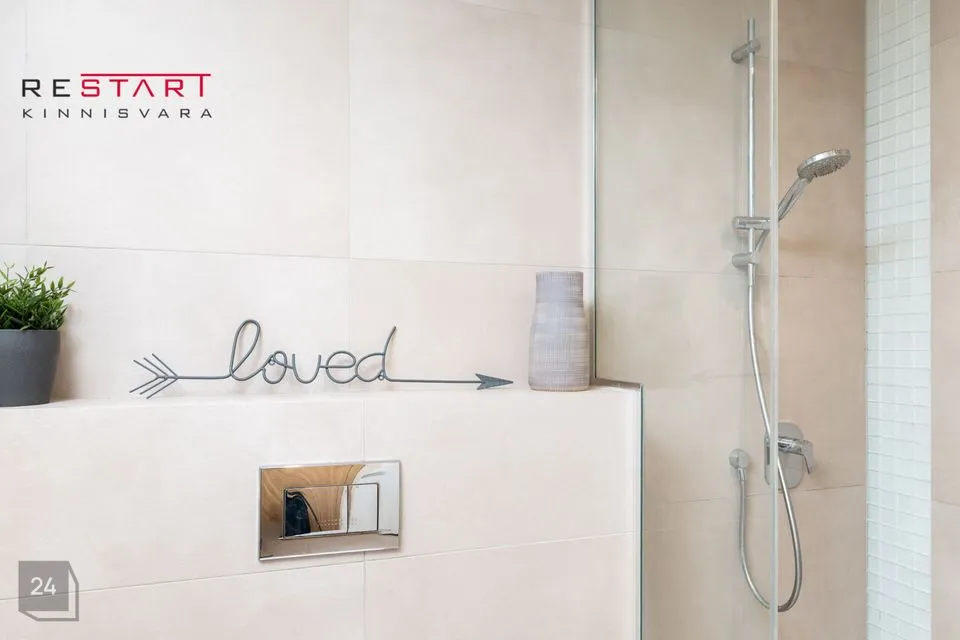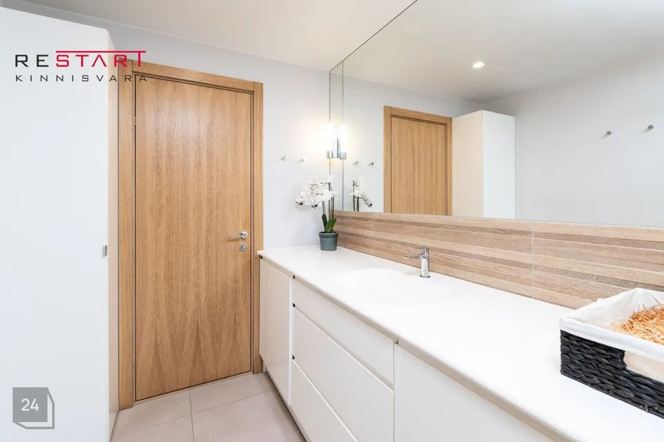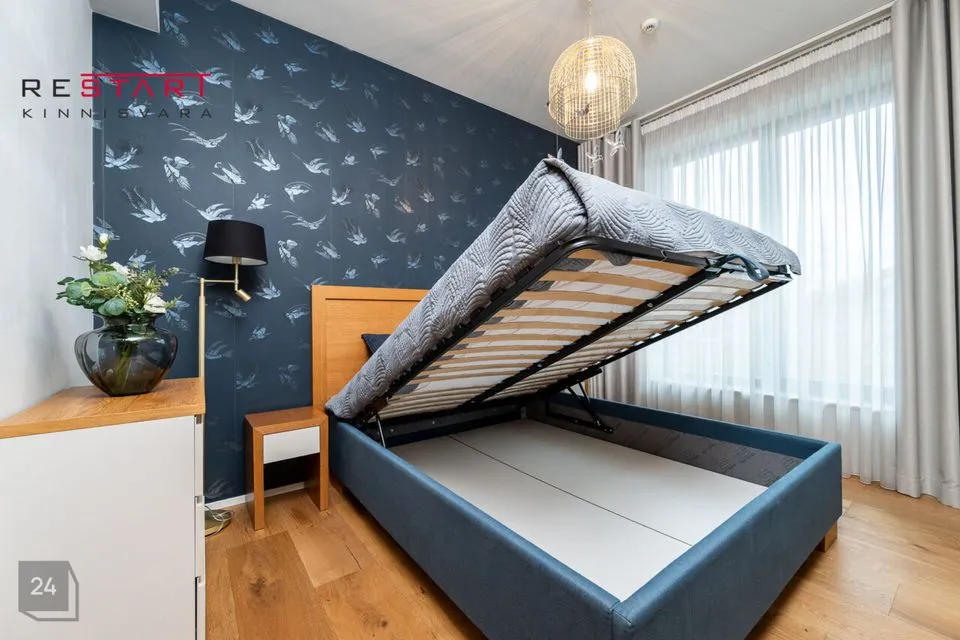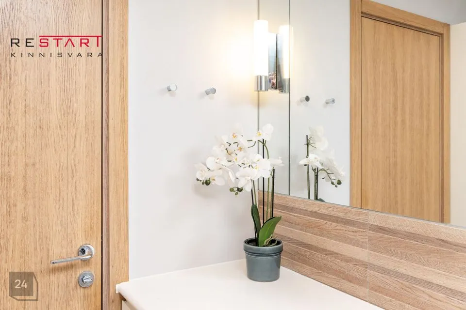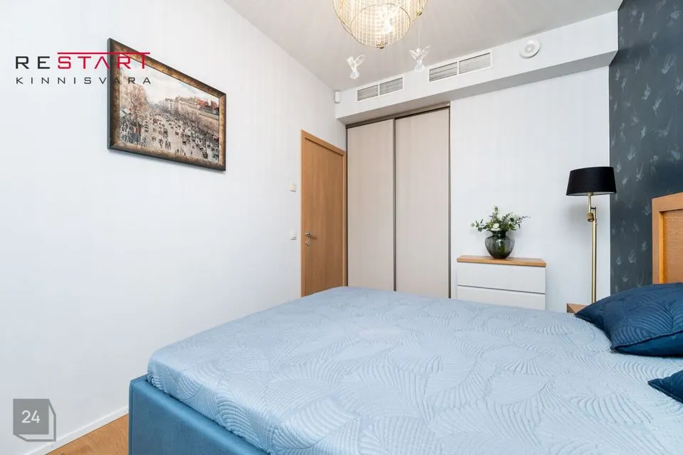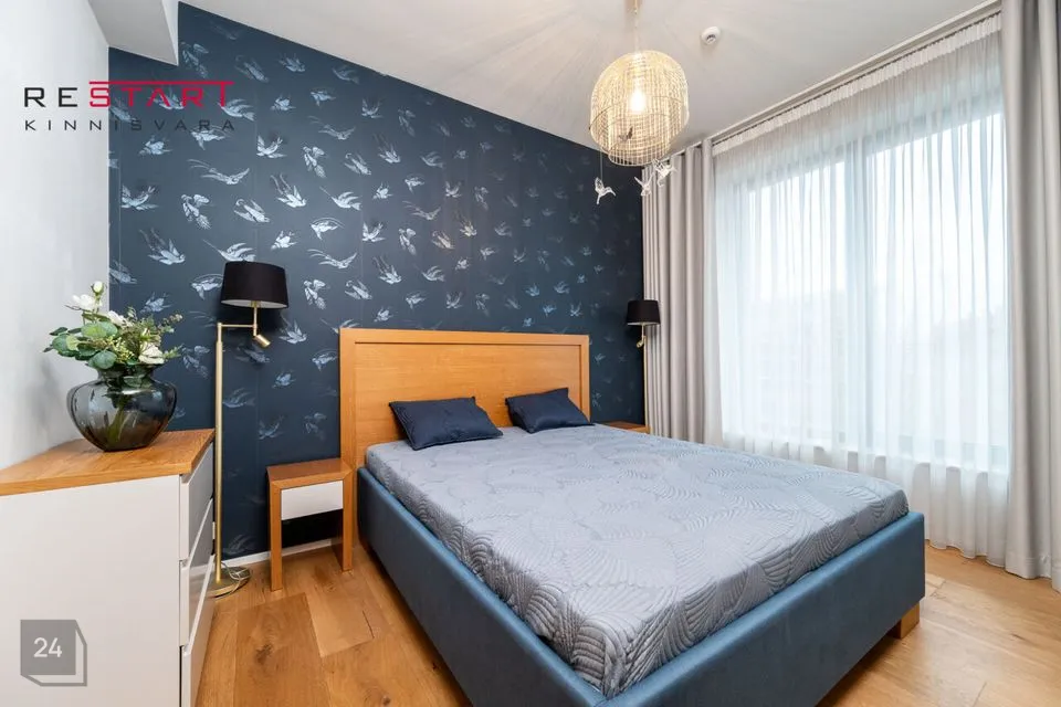 Magamistuba on rahulik ja privaatne, varustatud sisseehitatud garderoobikapiga. Kaunis vaade linnapanoraamile lisab ruumile avarust ja väärikust. Esikus paikneb mahukas garderoob mugavaks ja diskreetseks hoiustamiseks. Vannituba on modernne, maitsekalt viimistletud ning varustatud dušinurga, vannitoamööbli ja pesumasinaga.