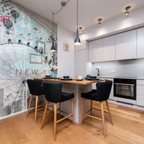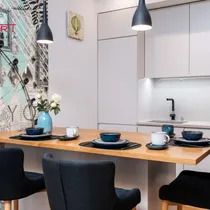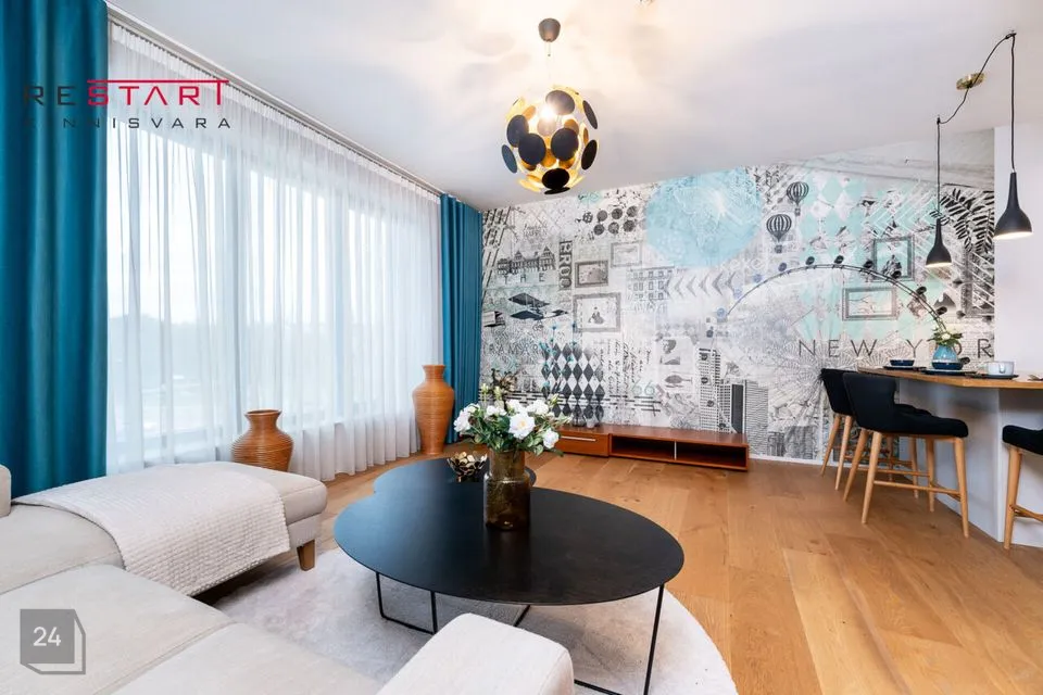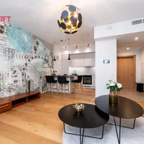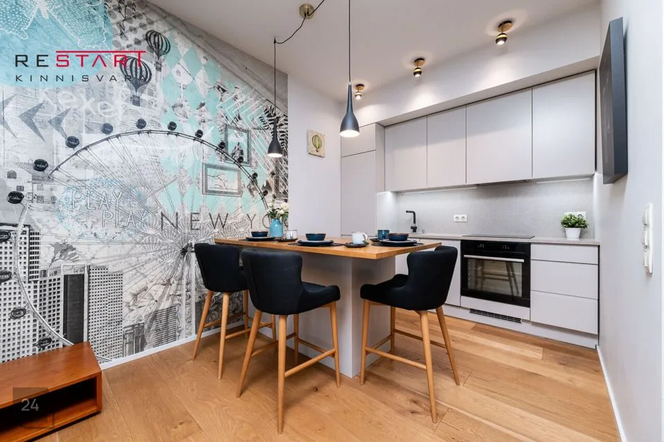 Avatud planeeringuga elutuba ja köök moodustavad ühtse stiilse terviku. Suured panoraamaknad toovad tuppa rohkelt päevavalgust ning avavad maalilise vaate Tallinna vanalinnale – tõeline luksus linnakodu armastajale.