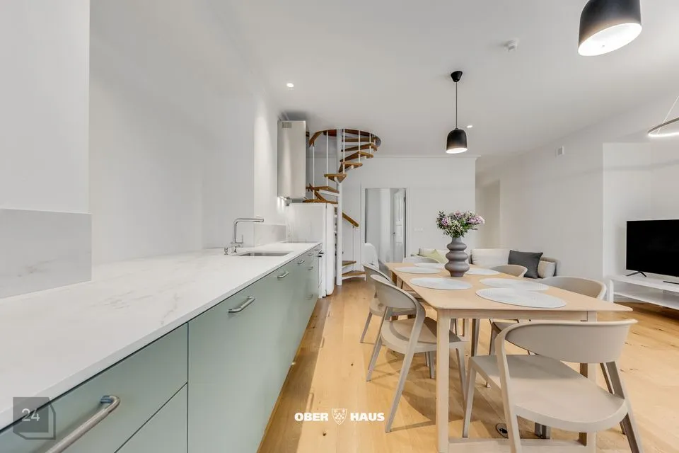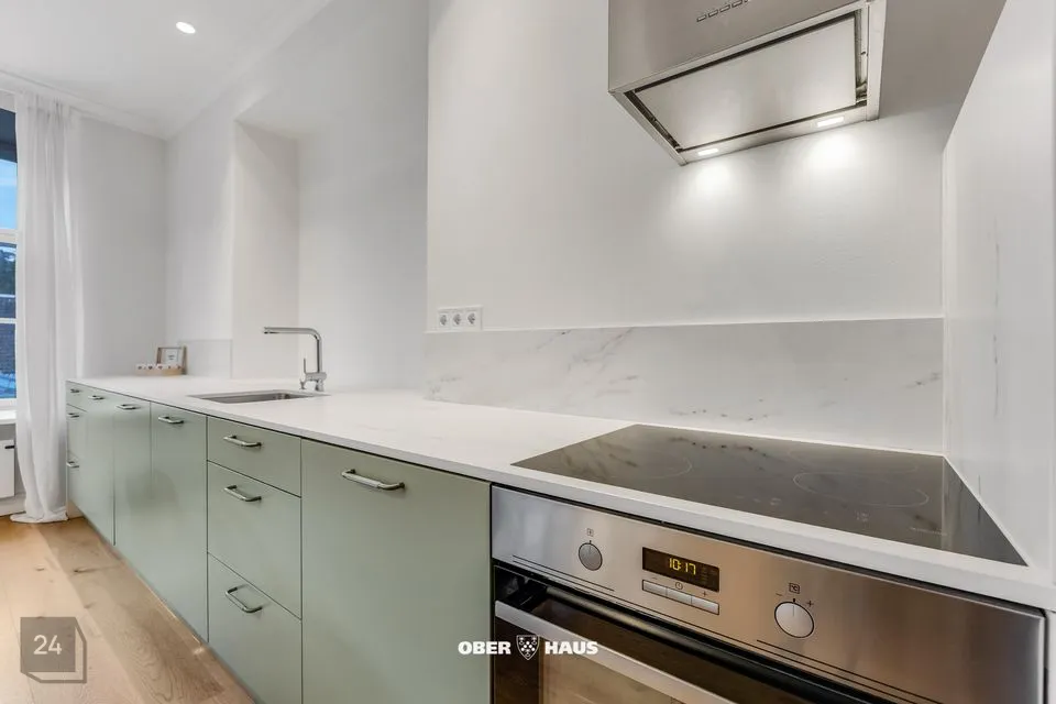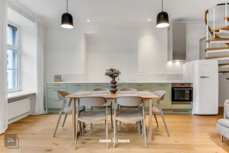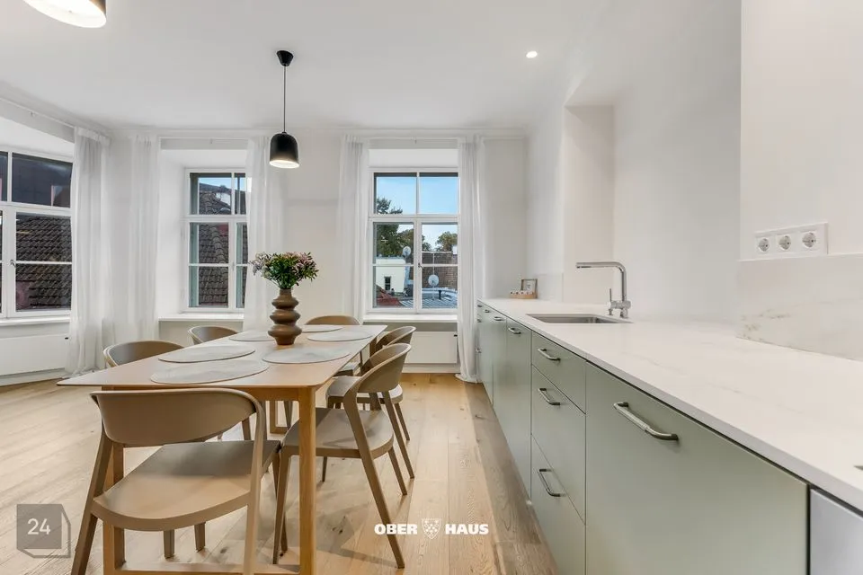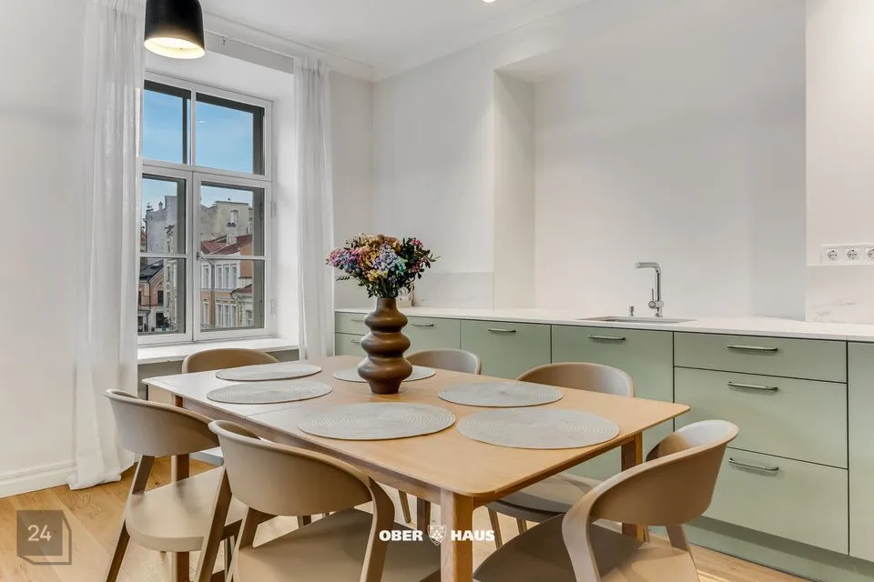 Korterit iseloomustab valgusküllasus, kõrged laed ja harmooniline ruumiplaneering.