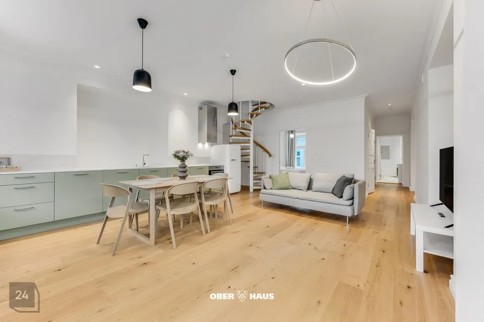 Põrandatel naturaalne parkett, mis toob interjööri soojust ja elegantsi.