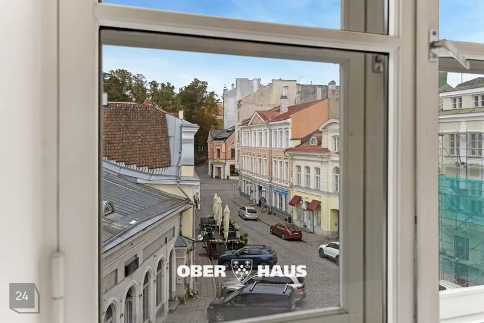Avar elutuba suurte akendega, kust avaneb vaade Vana-Viru tänavale – siit on tunda linna energiat ja vanalinna ajalugu.