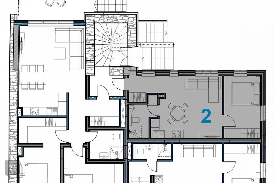 - Elamus on kokku vaid 6 korterit: kaks 2-toalist, kaks 3-toalist ja kaks 4-toalist. Kortereid iseloomustavad hästi läbimõeldud planeeringud.