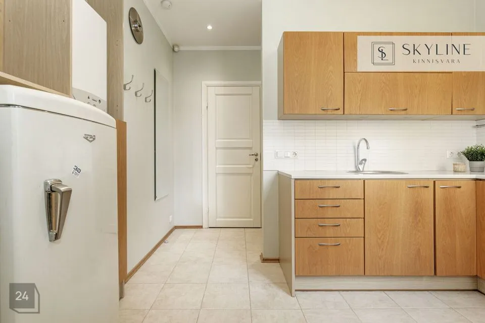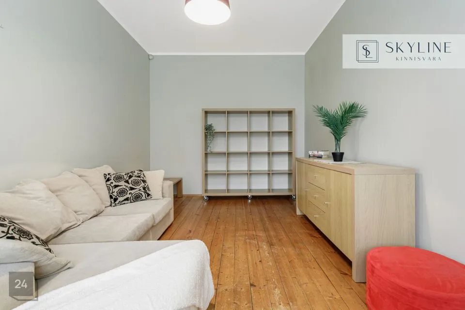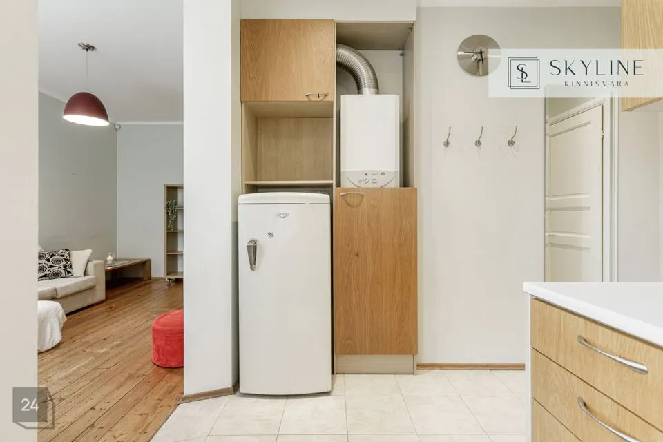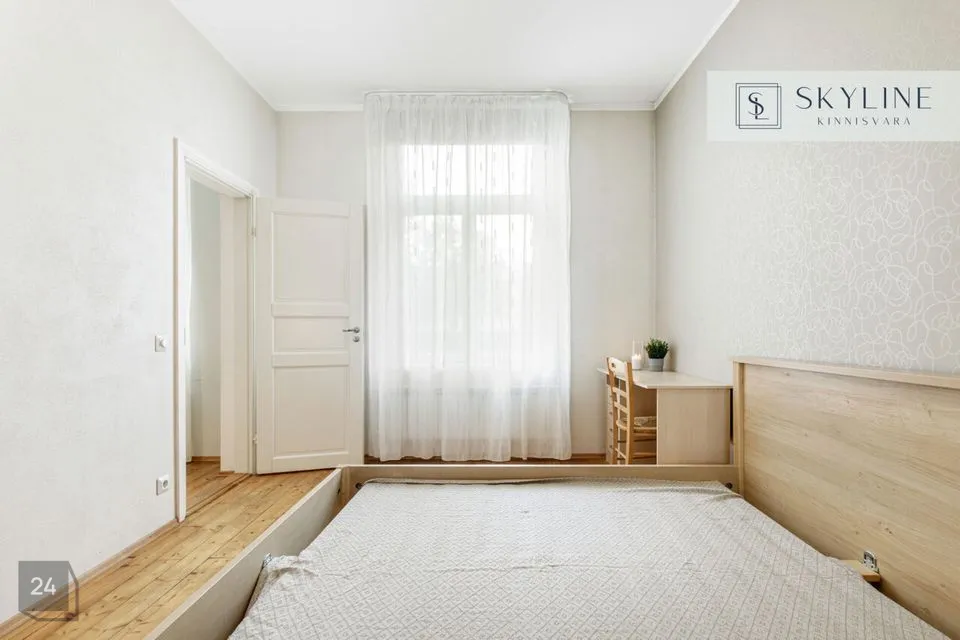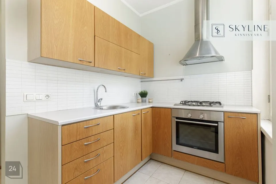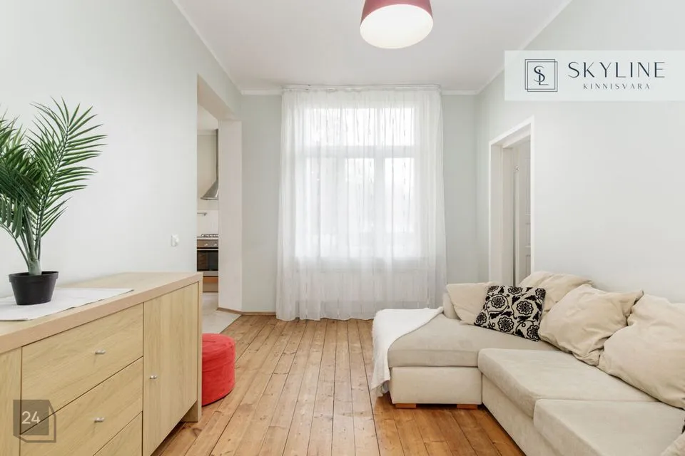 Korter asub 1932. aastal ehitatud miljööväärtuslikus kivimajas kõrgel esimesel korrusel. Aknad avanevad lõunapoolsesse hoovi, pakkudes rahu ja päikeselist valgust kogu päeva vältel. Laed on 2,9 m kõrgused, mis lisab ruumile avarust ja ajaloolist iseloomu. Korteri koosseisu kuuluvad avatud köögiga elutuba, magamistuba ja vannituba. Siseviimistluses on säilinud ajaloolist hõngu, mida täiendavad puitaknad, naturaalsed laudpõrandad eluruumides ning plaaditud põrandad köögis, esikus ja vannitoas. Korteris on lokaalne gaasiküte ja köögis paiknev gaasiboiler tagab ka sooja vee. Vannitoas, esikus ja köögis on elektriline põrandaküte. Köögis on gaasipliit ja kõik vajalik tehnika, vannitoas dušš ja pealtlaetav pesumasin. Akende ees on nii kardinad kui ka rulood. Korter on heas seisukorras ja renoveeriti 2007. aastal. Mööbel jääb korterisse kokkuleppel ostjaga.