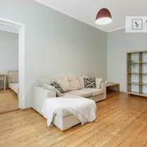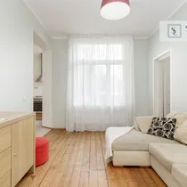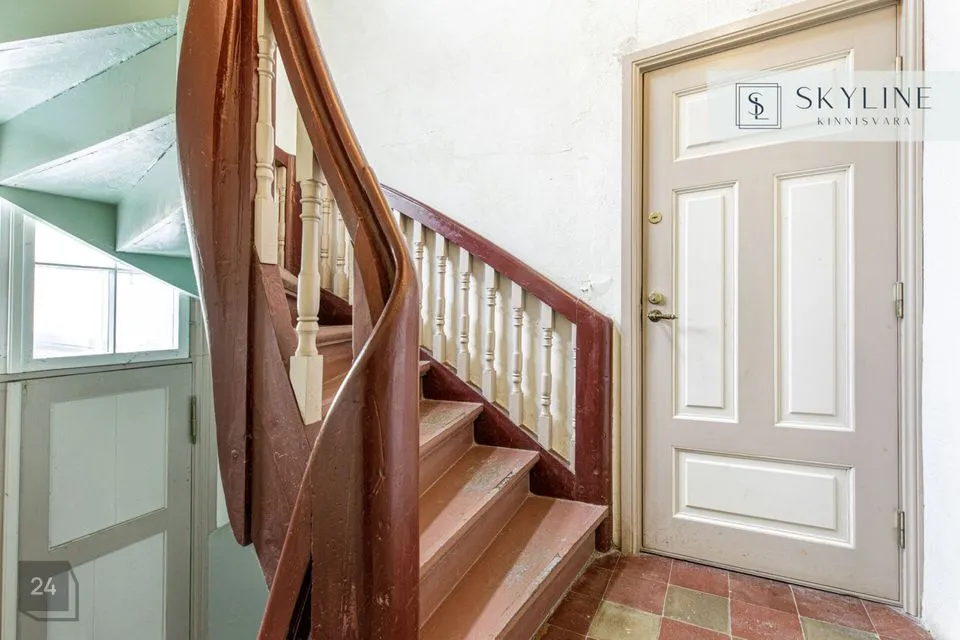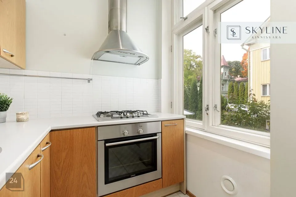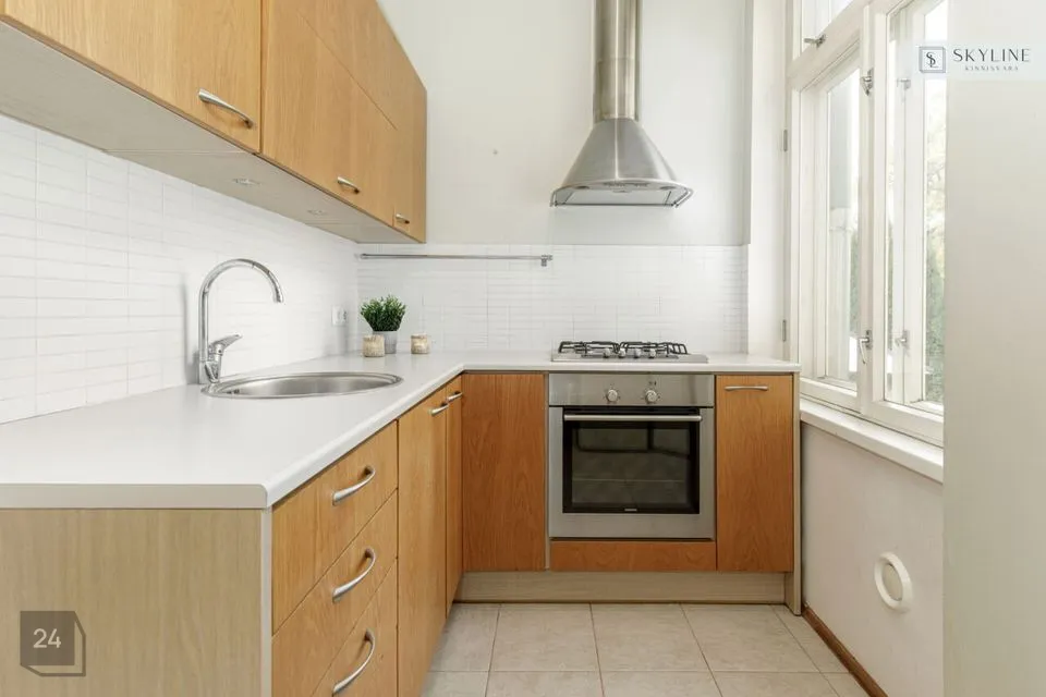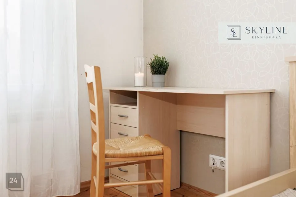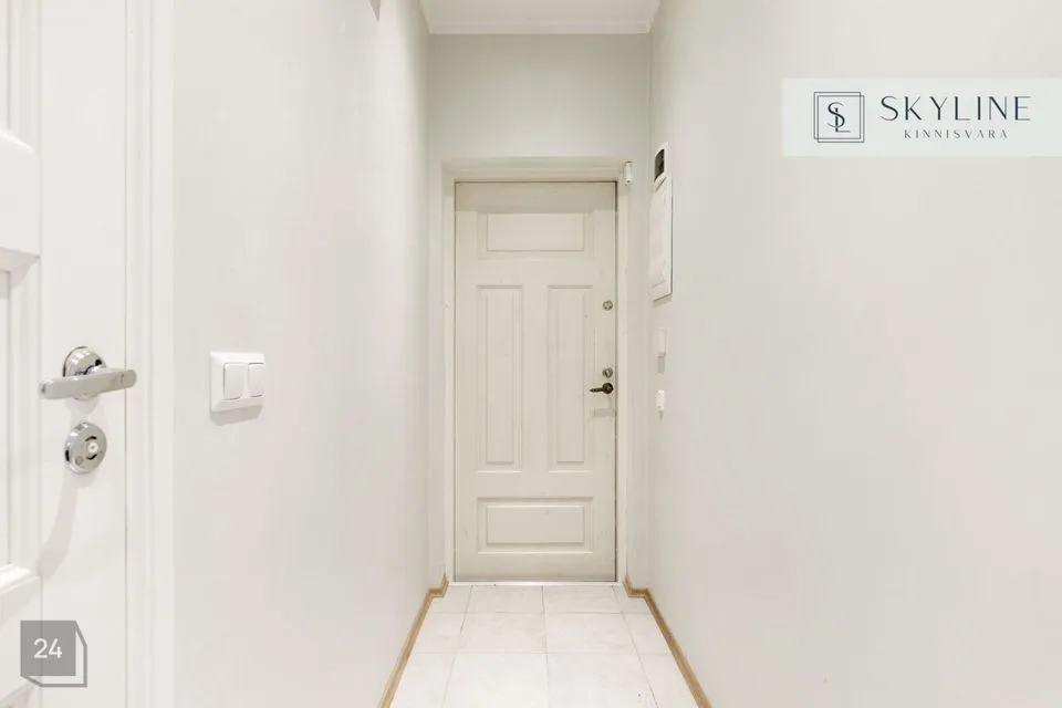 Korter asub 1932. aastal ehitatud miljööväärtuslikus kivimajas kõrgel esimesel korrusel. Aknad avanevad lõunapoolsesse hoovi, pakkudes rahu ja päikeselist valgust kogu päeva vältel. Laed on 2,9 m kõrgused, mis lisab ruumile avarust ja ajaloolist iseloomu. Korteri koosseisu kuuluvad avatud köögiga elutuba, magamistuba ja vannituba. Siseviimistluses on säilinud ajaloolist hõngu, mida täiendavad puitaknad, naturaalsed laudpõrandad eluruumides ning plaaditud põrandad köögis, esikus ja vannitoas. Korteris on lokaalne gaasiküte ja köögis paiknev gaasiboiler tagab ka sooja vee. Vannitoas, esikus ja köögis on elektriline põrandaküte. Köögis on gaasipliit ja kõik vajalik tehnika, vannitoas dušš ja pealtlaetav pesumasin. Akende ees on nii kardinad kui ka rulood. Korter on heas seisukorras ja renoveeriti 2007. aastal. Mööbel jääb korterisse kokkuleppel ostjaga.