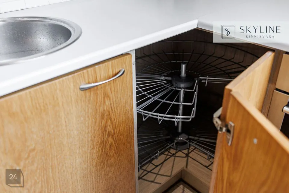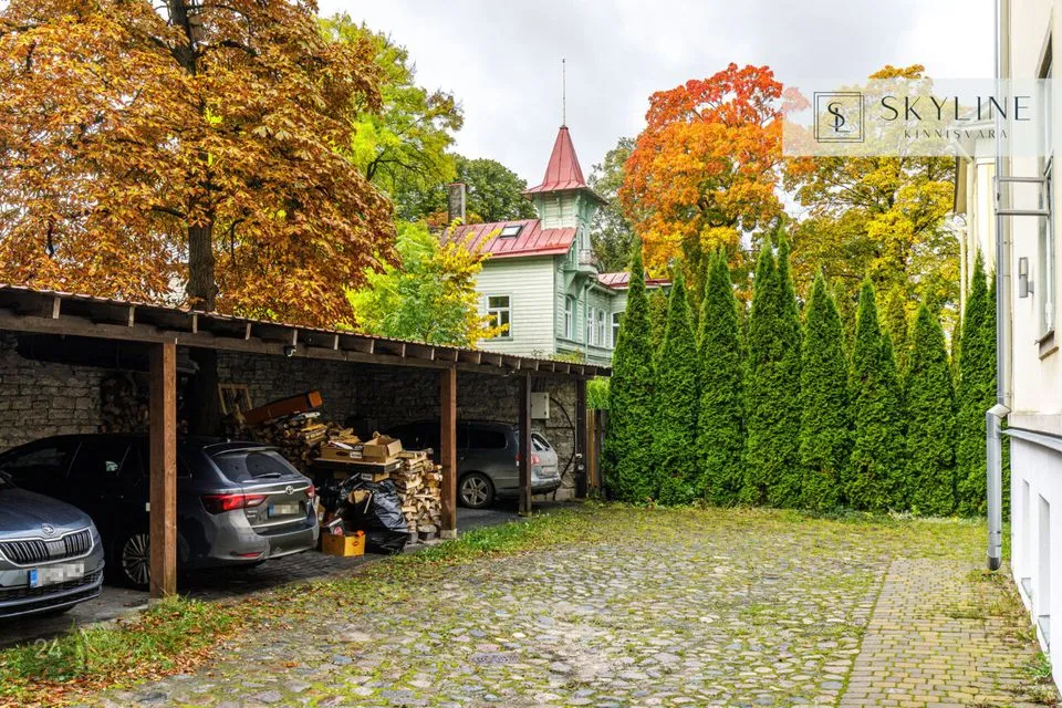 Korteri juurde kuulub varjualusega parkimiskoht hoovis (nr 1, otse sissesõidu kõrval) ning keldriboks pindalaga 6,5 m², mis on omaniku ainukasutuses. Keldriruum on hetkel niiske ja vajab korrastamist.