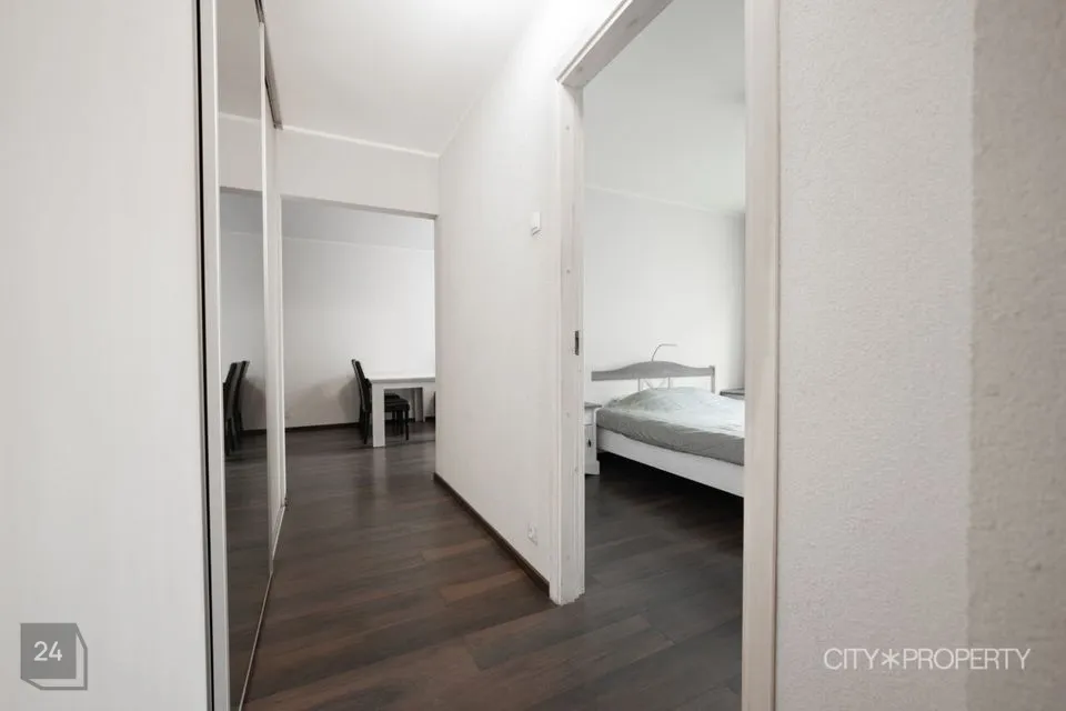Korterisse sisenedes leiate end esikust, millest paremale jääb vanniga wc-vannituba. Esikust otse jääb integreeritud tehnikaga(keraamiline pliit, praeahi, nõudepesumasin, külmkapp, kubu) köök. Esikust vasakule jääb koridor koos terve seina ulatuses garderoobikapiga. Koridorist viib esimene uks privaatsesse magamistuppa. Teine uks viib ruumikasse elutuppa, mille aknad ja rõdu avanevad õhtupäikese poolsesse sisehoovi.