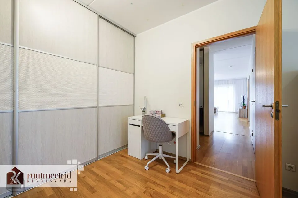 Privaatne asukoht! Suur 12m2 rõdu. Ilus vaade. Üllatavalt valgusküllane korter avara elutoaga, kus valitseb oma maja õhkkond. Maja asub mikrorajooni sees, eemal teede mürast ja tolmust. Trepikojas on ainult 6 korterit, mis tähendab suurepärast privaatsust. Suletud siseala koos mänguväljakuga. Nurgapealne korter teisel korrusel - suurepärane privaatsus. Super planeering: avar elutuba 28 m2, eraldi köök, avarad magamistoad (16m2, ja 11m2). Peamine magamistuba ja lastetuba asuvad eraldi, mis tagab hea privaatsus. Kõik mugavused. Parkimiskoht garaažis. Köetav panipaik korteriga samal korrusel. Avar köök, kus pandi uus köögimööbel ja tehnika 2024 aastal. Valgusküllane korter, mille aknad avanevad maja kolmele küljele. Logistiliselt väga hea asukoht! Kõik eluks vajalik käe-jala juures! Lähedal Löwenruh park, kaubanduskeskused Mustika ja Mustamäe keskus, Apollo kino, MyFitness, kool ja lasteaed.