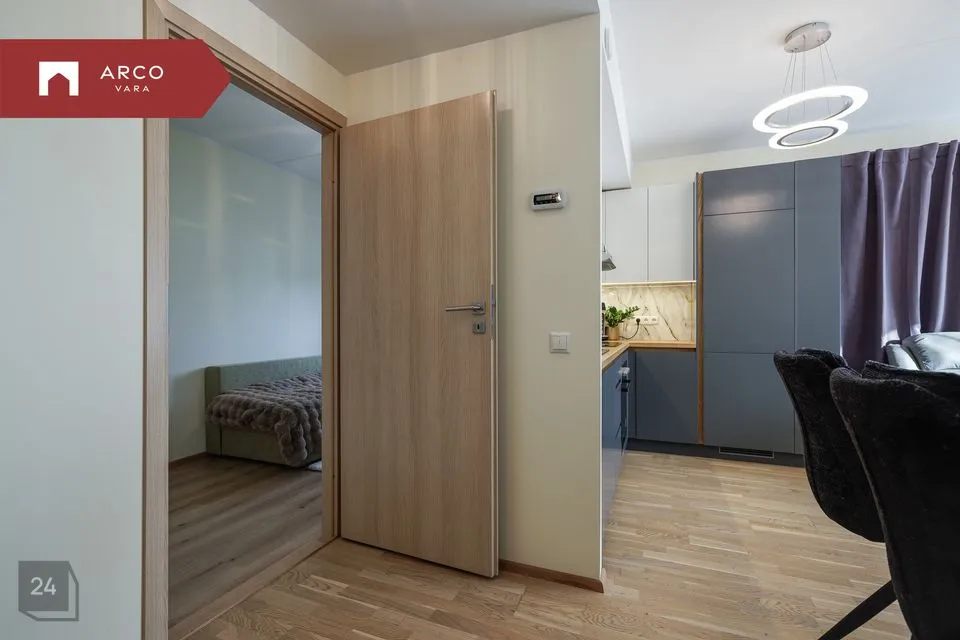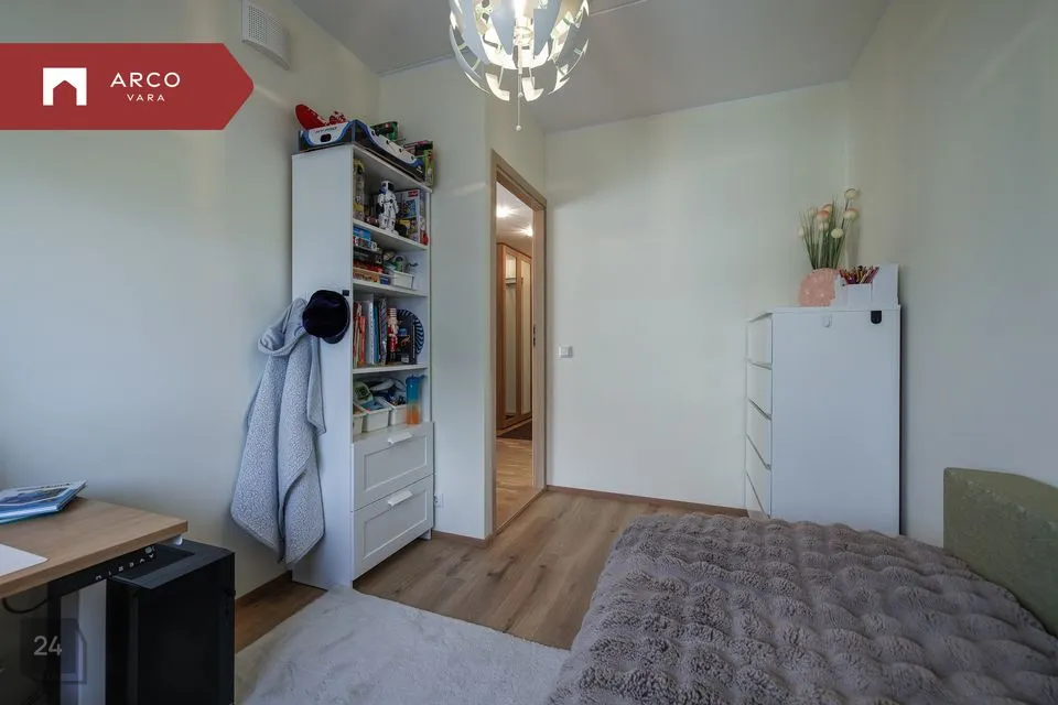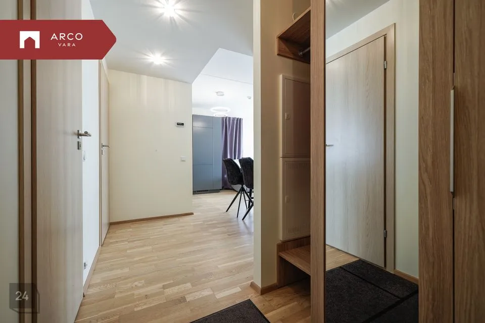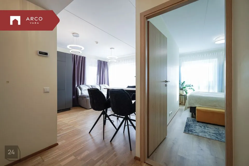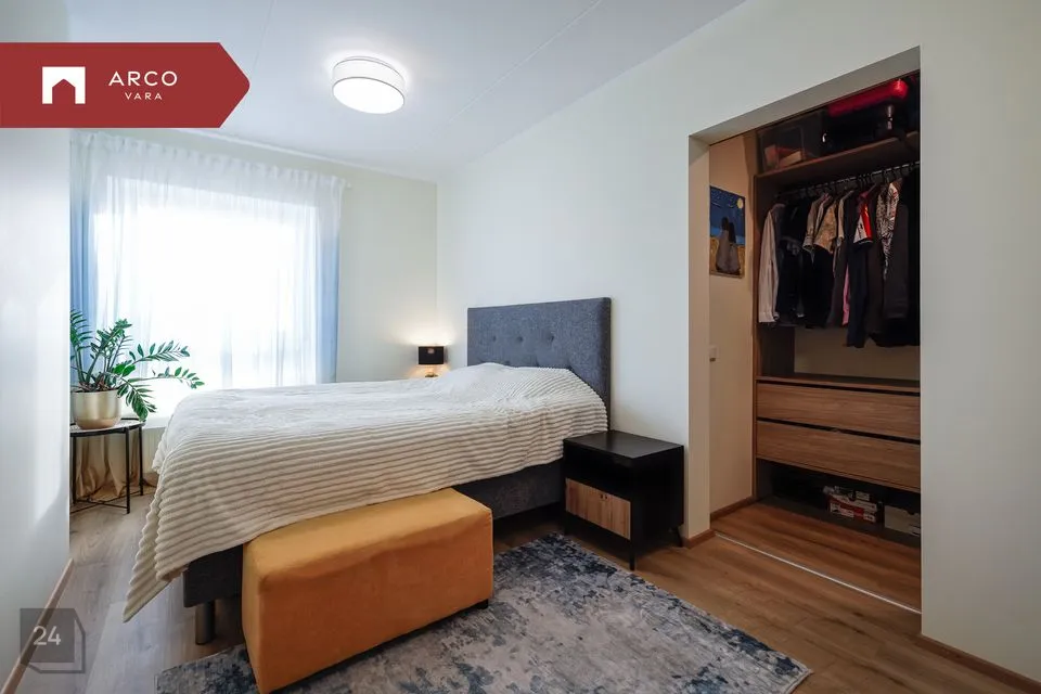 Korteri koosseisu kuuluvad avar esik garderoobikapiga, avatud köök elutoaga, kaks magamistuba, walk-in garderoob ja vannituba koos WC-ga. Elutoast pääseb 4,3 m² rõdule.