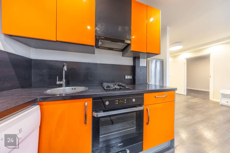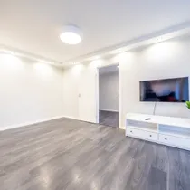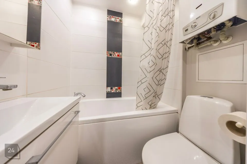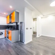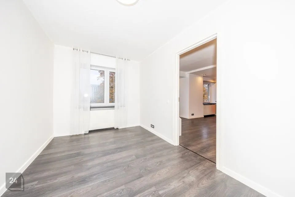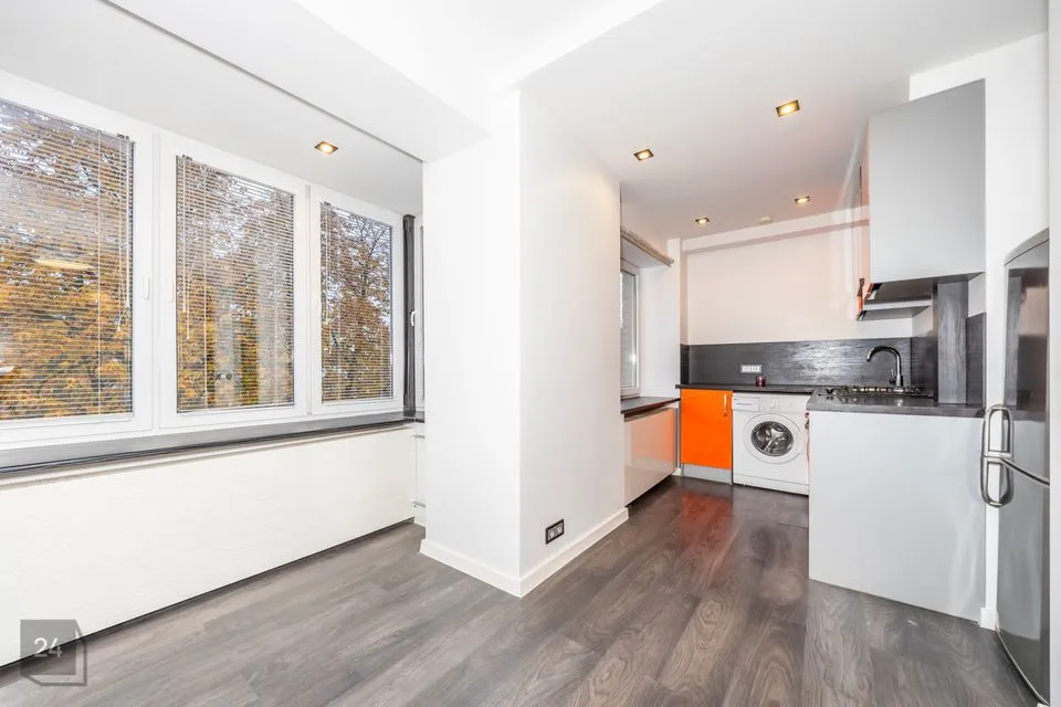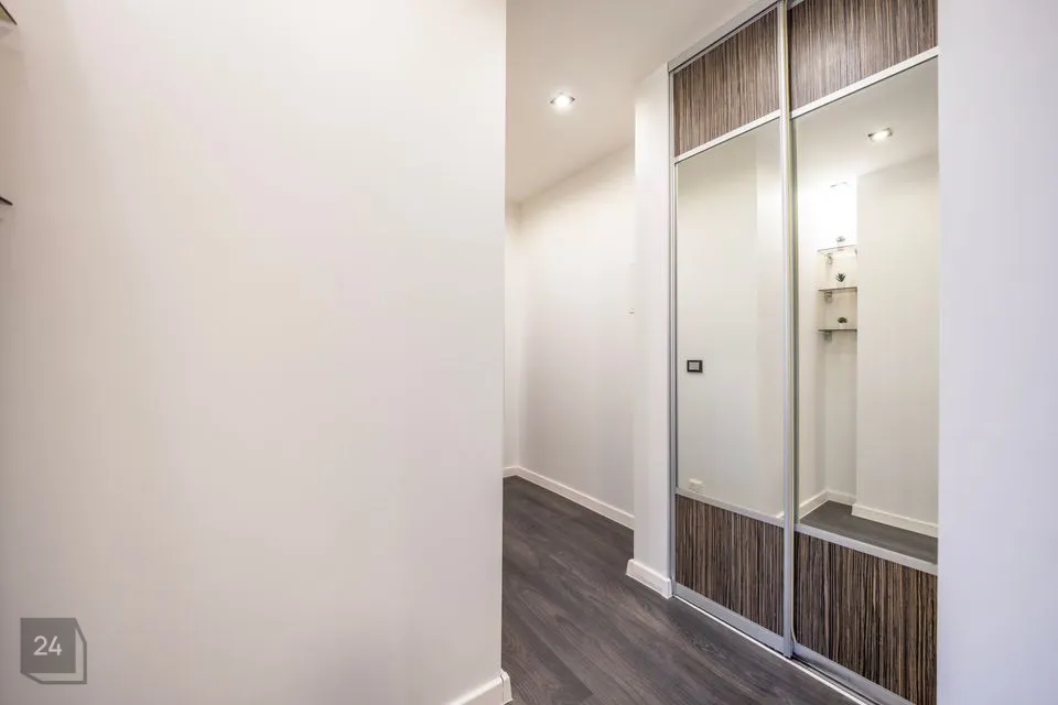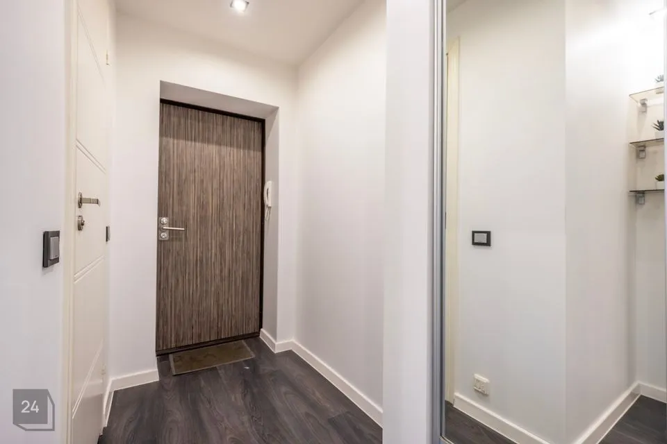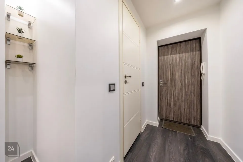 Ruumide koosseisu kuulub: sisseehitatud garderoobikapiga esik; avar avatud köögiga elutuba; magamistuba ning vannituba. Siseviimistluses on kasutatud heledaid neutraalseid toone ja korteri sisustus on kaasaegne. Vannitoas on ka põrandaküte.