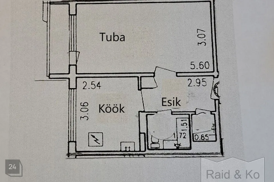 Müüdava korteri koosseisu kuulub köök, elutuba, WC-vannituba, garderoob, esik ja lodža.