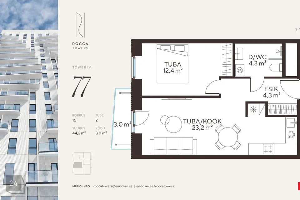 Kui otsid kvaliteetset kodu kõigi moodsate mugavuste ja lisaväärtustega, siis võta ühendust ja tule Rocca Towers kõrghoonete uute korteritega tutvuma!