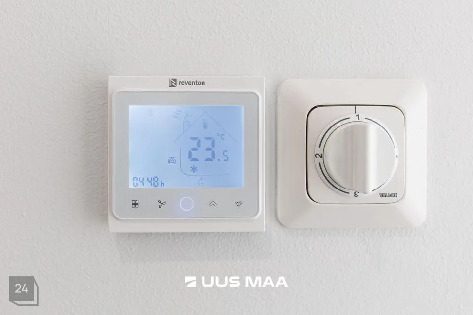 The apartment has adjustable mechanical ventilation with a cooling system. The building has central heating.