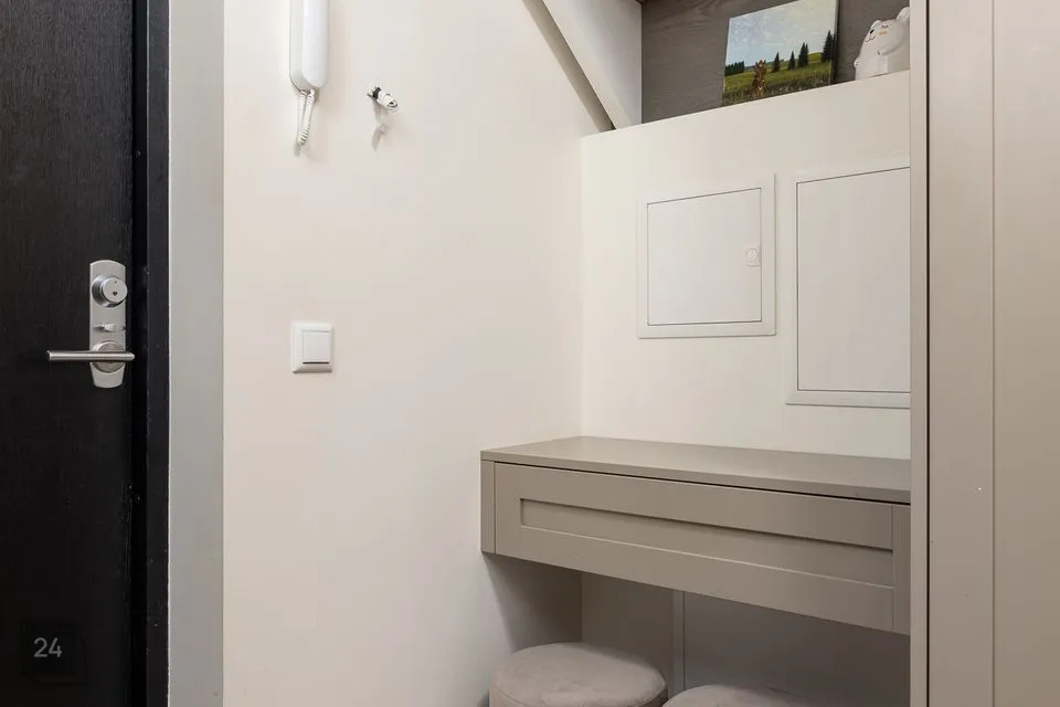 Korter müüakse koos tehnika ning mööbliga. Sisekujundajateks olid Mari-Liis Mäesepp koostöös Marje Luhalaiuga.