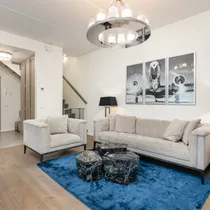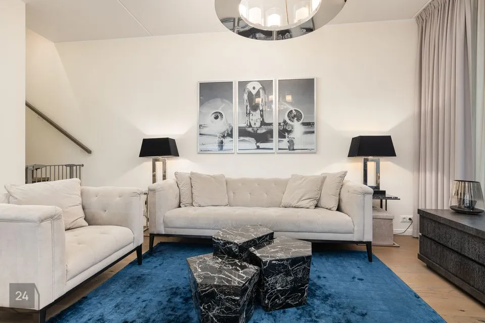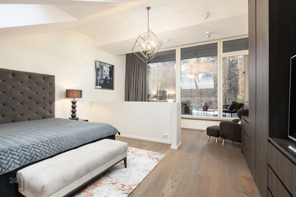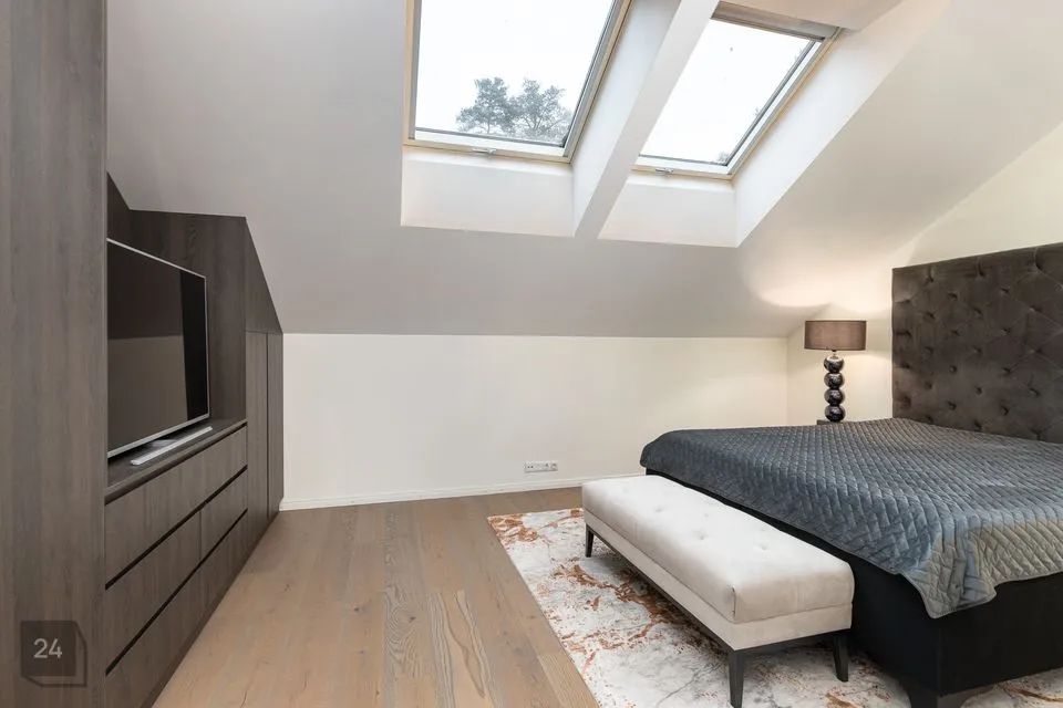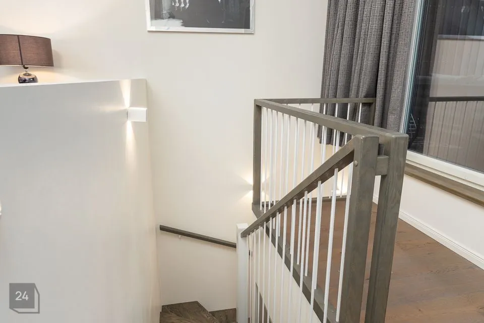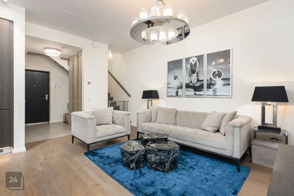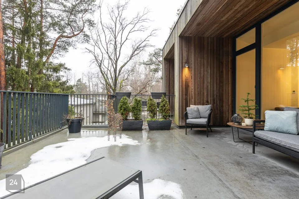 See disaineri käe all valminud avar korter paikneb läbi kahe korruse, olles loodud nii, et lõunapäike valgustab suure terrassi (32,2m2) ja elutoa läbi suurte akende. Esimesel korrusel asub avar elutuba koos stiilse avatud köögiga kokku (28,1m2), teisel korrusel on kõrgete lagedega valgusküllane magamistuba (29,4m2), mille juurde kuulub päikeseline terrass (32,2m2)