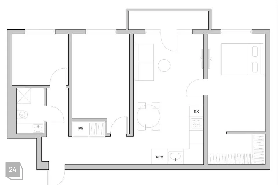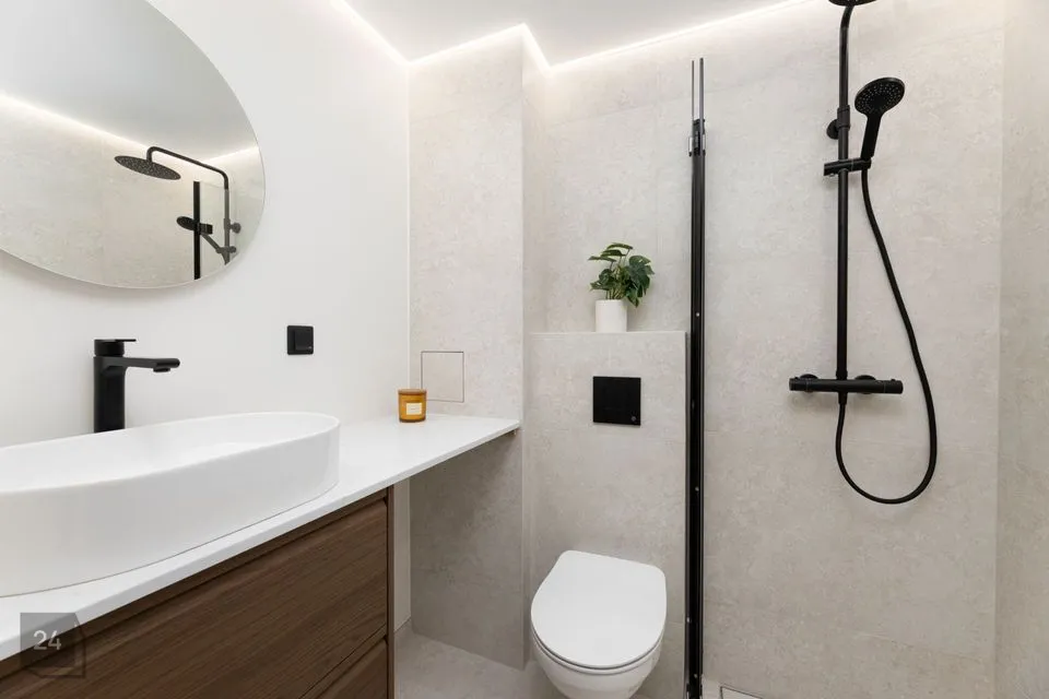 Korteri koosseisu kuuluvad esik, millest avaneb uks ruumikasse ja stiilsesse vannituppa. Vannitoas on põrandasoojendus ning lahtikäiv dušisein. Kogu torustik vannitoas on värskelt vahetatud.