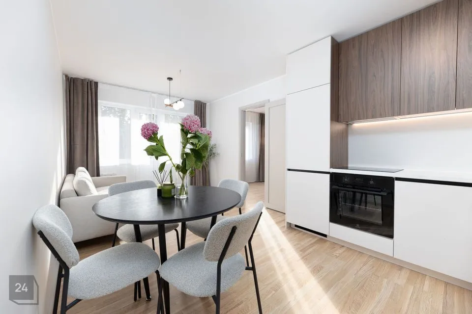 Elutoas on mugav diivan Eesti tootjalt ning valmidus televiisori ühendamiseks. Elutoast pääseb rõdule. Magamistoas on lisaks walk-in garderoob. Lisaks on kolmas väiksem magamistuba, mida saab kasutada ka kodukontorina.