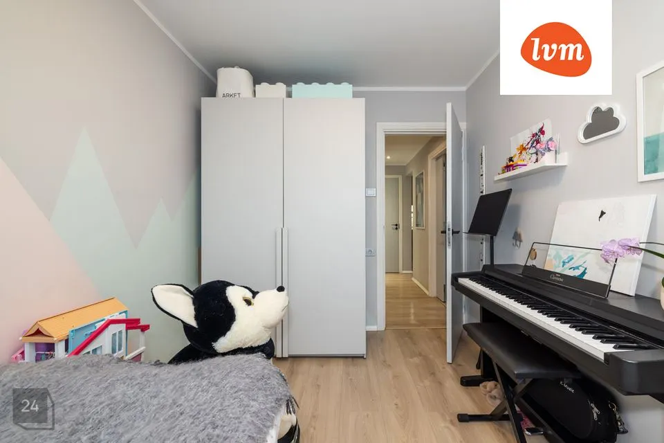 Esik, kus on walk-in garderoobikapp; eraldi köök; wc; pesuruum; elutuba, kus on suur garderoobinurk ning pääs hommikupäiksepoolsele rõdule; lapse tuba; põhimagamistuba, kust samuti pääs rõdule.