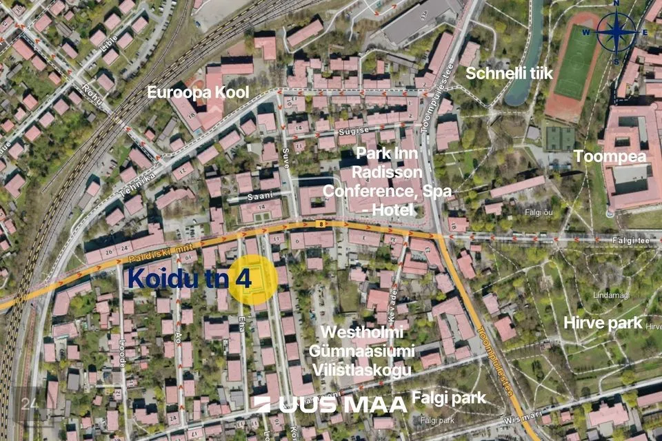 Linnulennult 550 m kaugusel vanalinnast ja Telliskivi Loomelinnakust, 400 m kaugusel Hirvepargist, Schnelli tiigist, Balti jaamast, kuid siiski siiski rahulikus sisekvartalis.