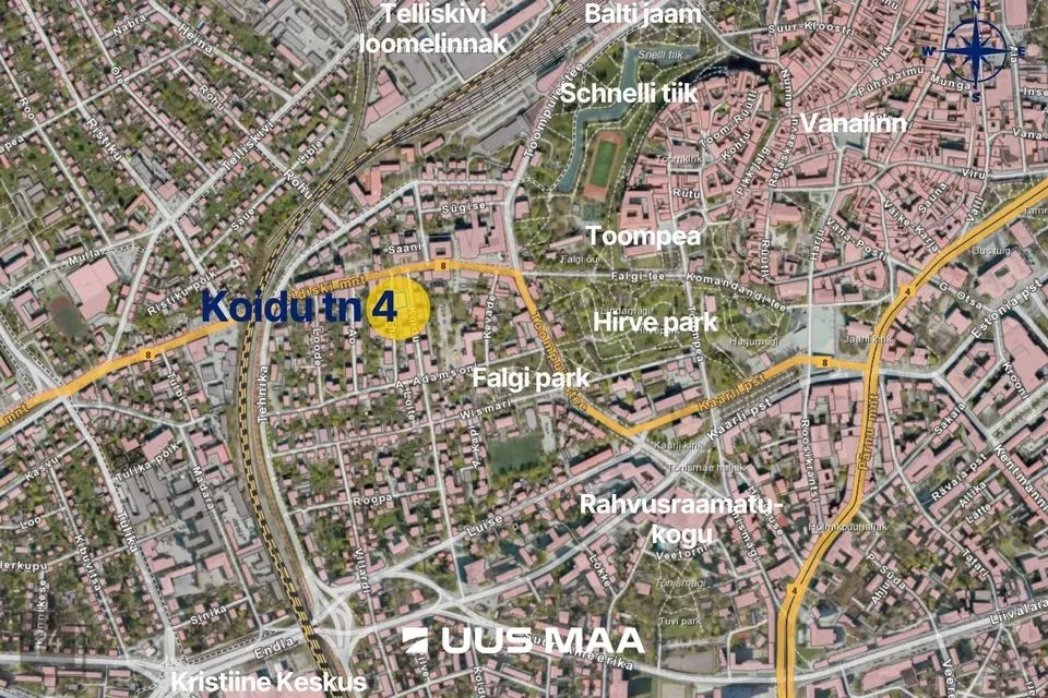 ASUKOHT - vaiksel tänaval Balti jaama, Toompea, Hirvepargi, Rahvusraamatukogu ning Telliskivi Loomelinnaku vahel