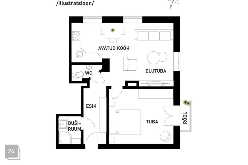 • avatud köök-elutuba