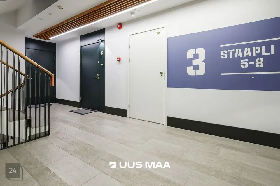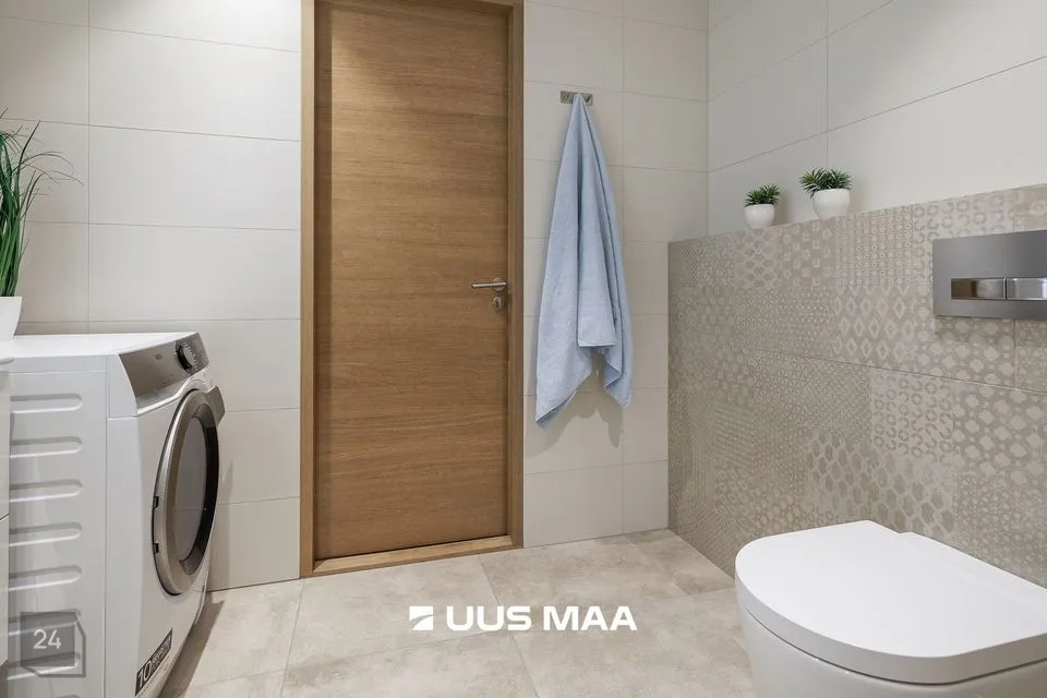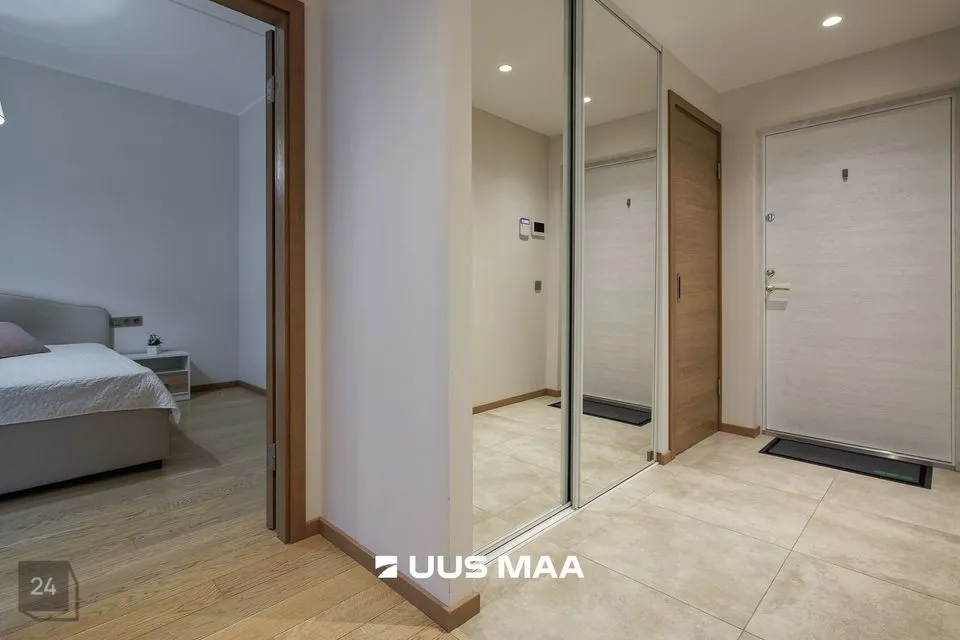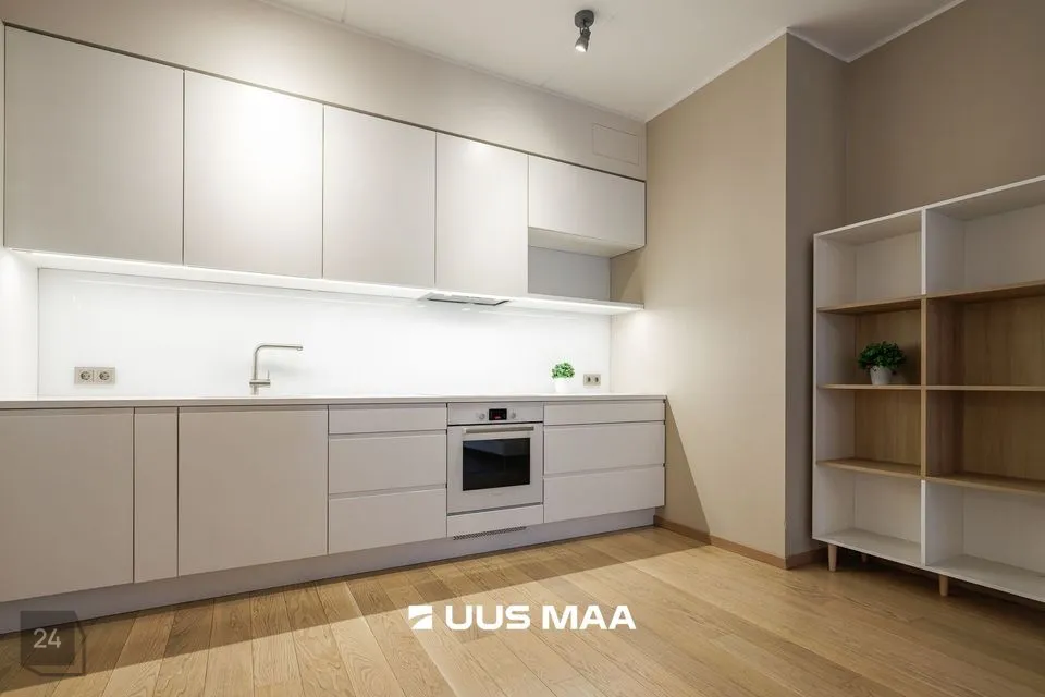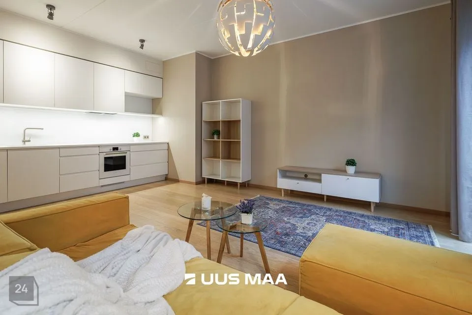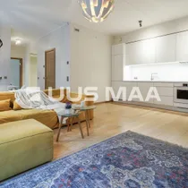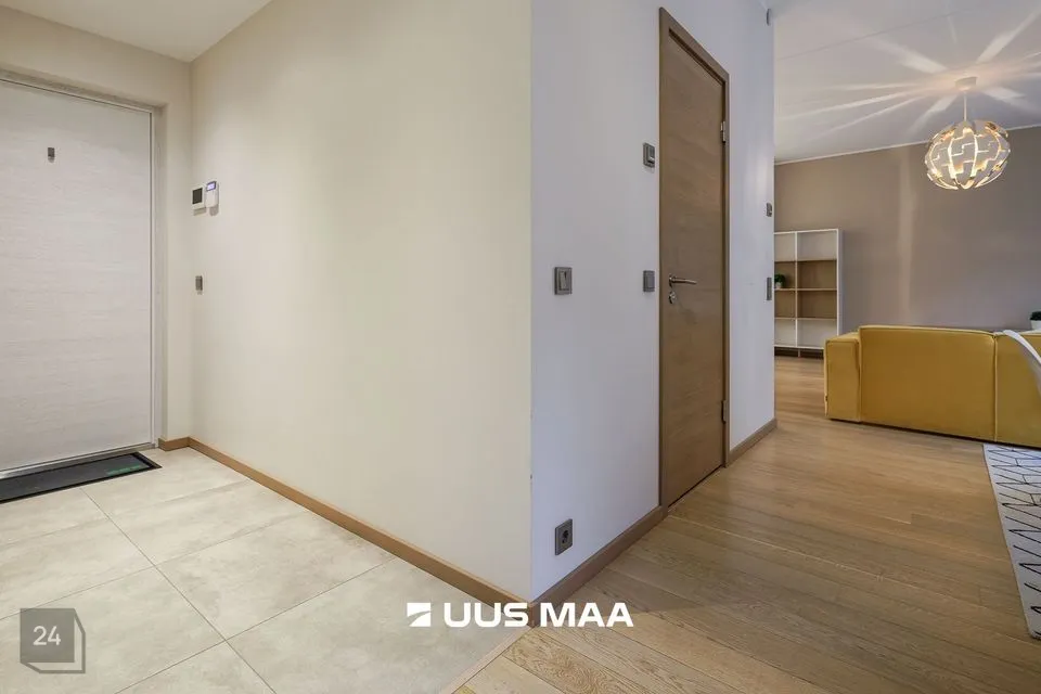Selles pealelõuna- ja õhtupäiksega kodus on 31,6 m2 köök-elutuba, 4,4 m2 rõdu, 1 magamistuba 13,3 m2 + walk-in-garderoob 5,1 m2, duśiruum tualetiga 5,8 m2 ja esik 8,5 m2. Naturaalse tammeparketiga kaetud põrandad, maast laeni aknad. Kvaliteetne köögimööbel integreeritud tehnikaga (külmik, nõudepesumasin, induktsioonpliit ja ahi, õhupuhasti), söögilaud ja toolid, elutoa- ja magamistoamööbel, valgustid, kardinad, vaibad, kuivatiga pesumasin, lükandustega garderoobikapid. Madalate kuludega C-energiaklassi majal on kaugloetavad elektri- vee- ja küttearvestid ning soojustagastusega ventilatsioonisüsteem.