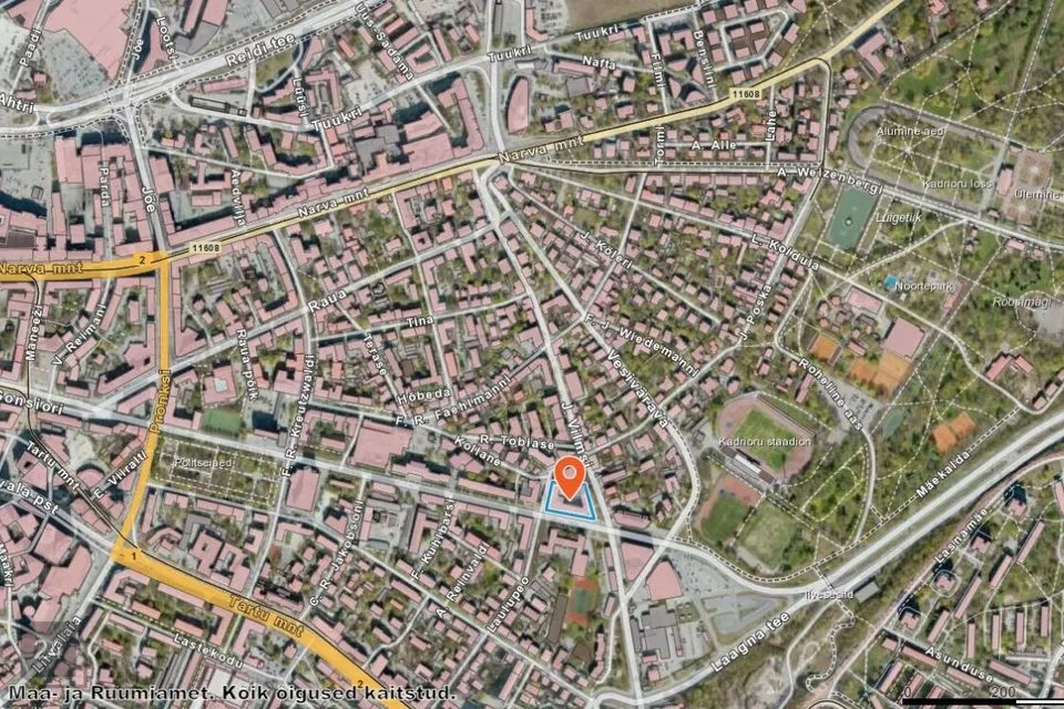 Korter asub kõrgemal teisel korrusel, maja esimesel korrusel asuvad kõrge laega äripinnad.