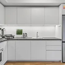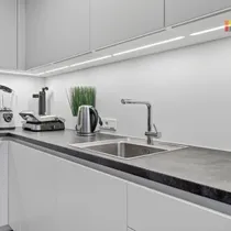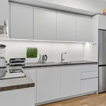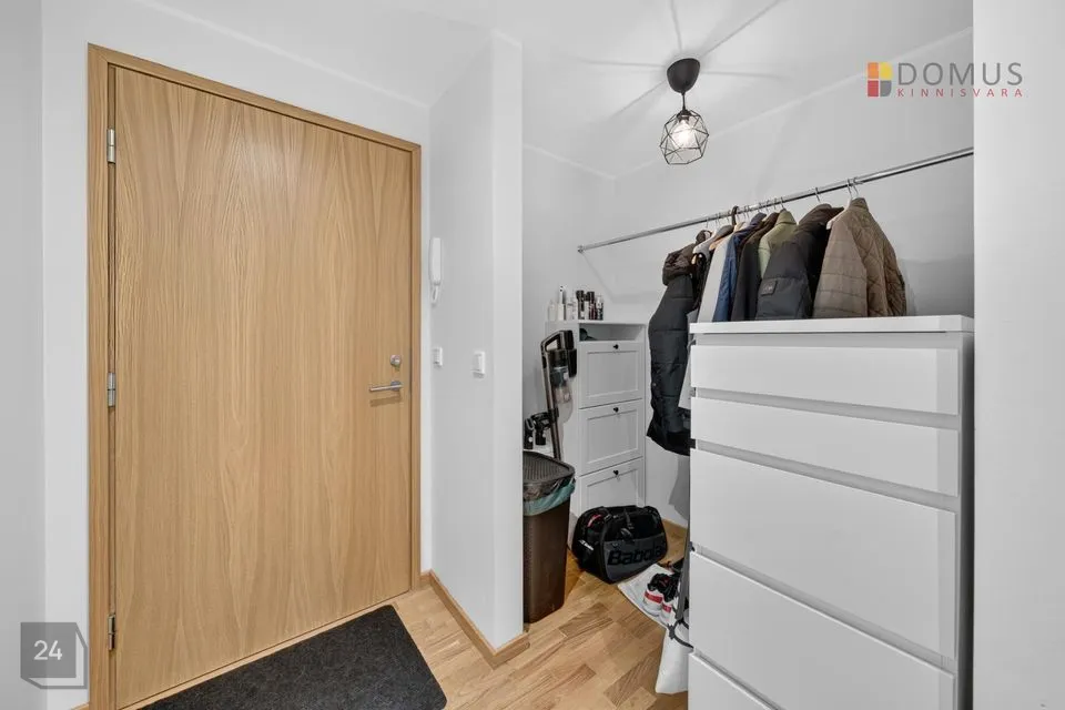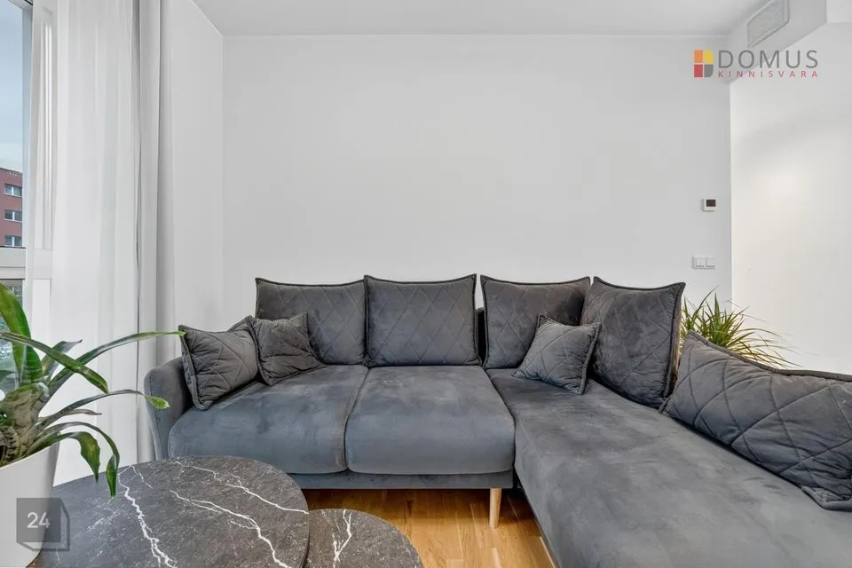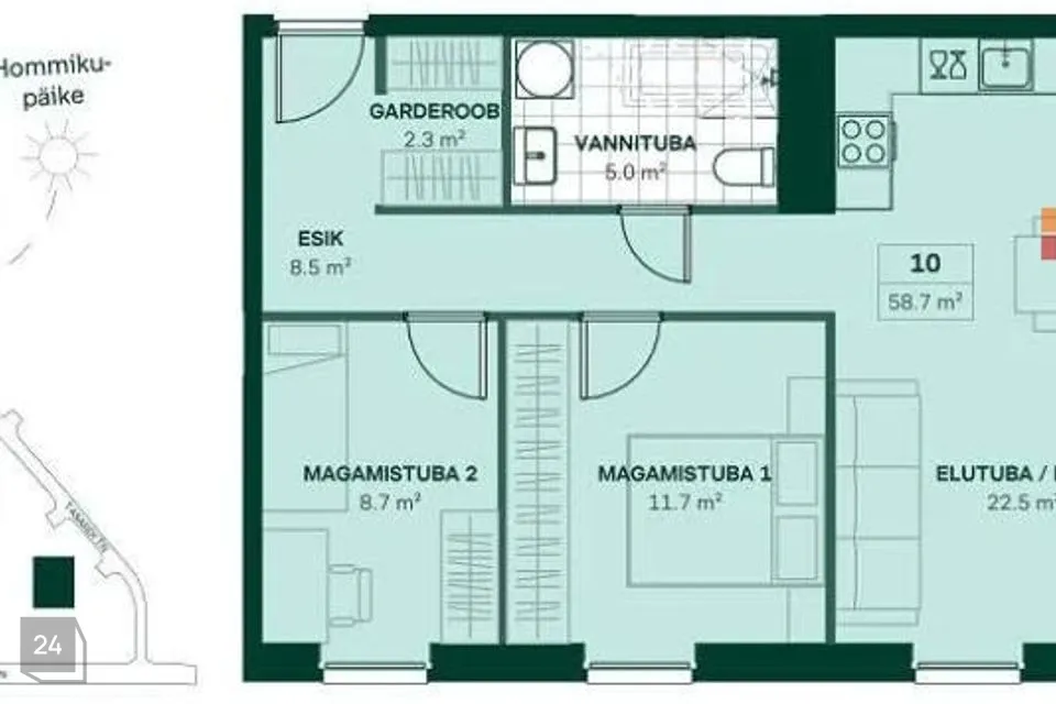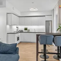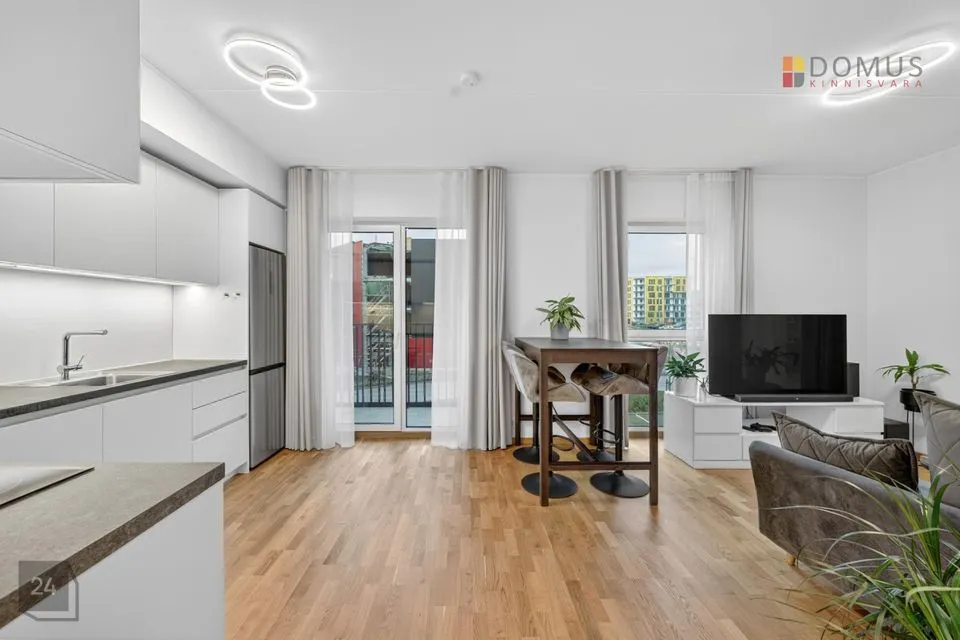 Hinnas sisaldub ka köögimööbel koos integreeritud Electrolux tehnikaga (nõudepesumasin, pliidiplaat, küpsetusahi) köögikubu ning külmik. Lisaks valged riidekapid, elutoa diivan-voodi, vannitoa valamu- ning peeglikapp , aknakatted ja laevalgustid.