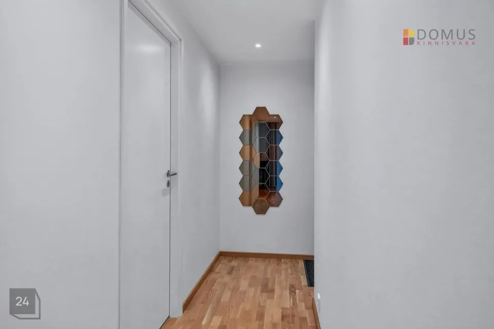 Eluruumide põrandaid katab naturaalne puitparkett, seinad on viimistletud heledates toonides, siseuksed on valged, siledad ja kärgsisuga. Märgades ruumides on põrandatel ja seintes keraamilised plaadid ja laes süvistatud valgustid.