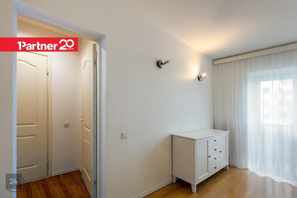 Korter on läbi maja planeeringuga, kuhu paistab nii hommiku kui õhtupäike.