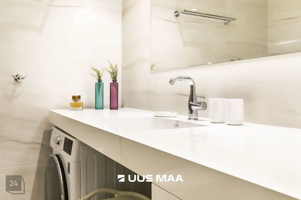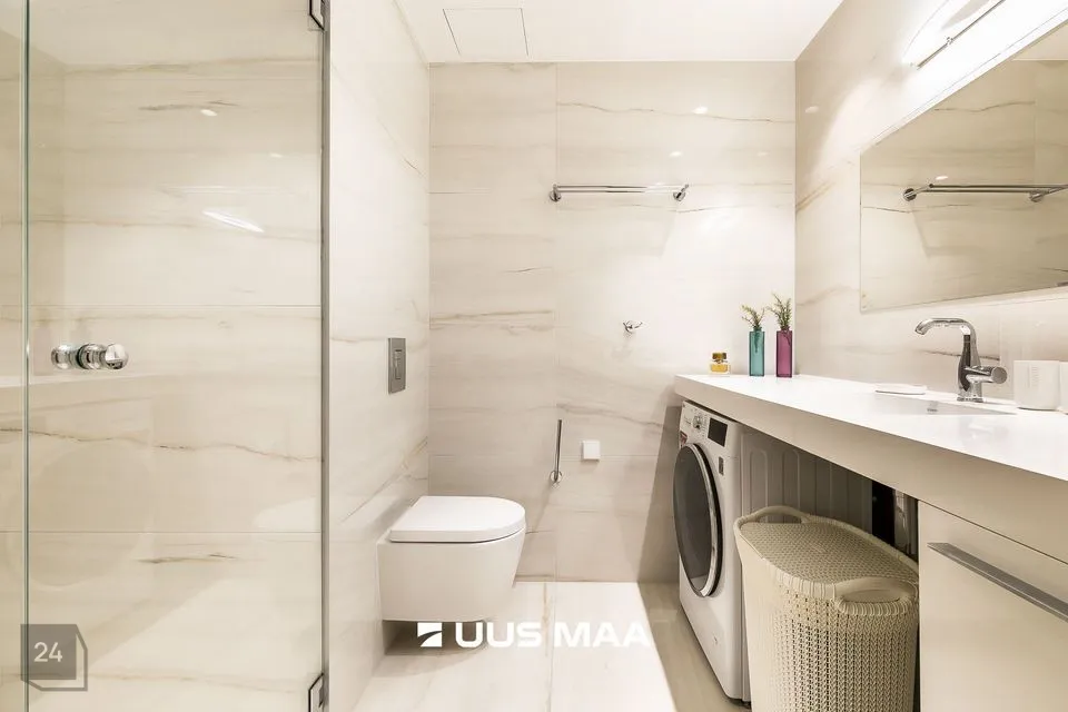Korter müüakse koos kvaliteetse disainmööbli ja tehnikaga, induktsioonpliit ja külmkapp firmalt Electrolux. Pesuruum on varustatud pesumasin-kuivatiga firmalt LG.