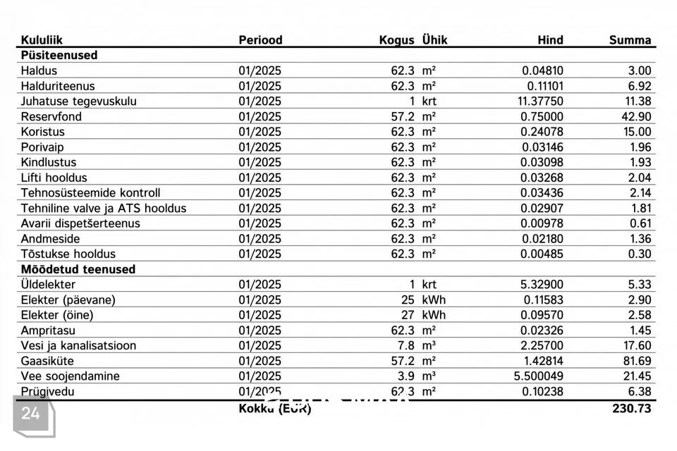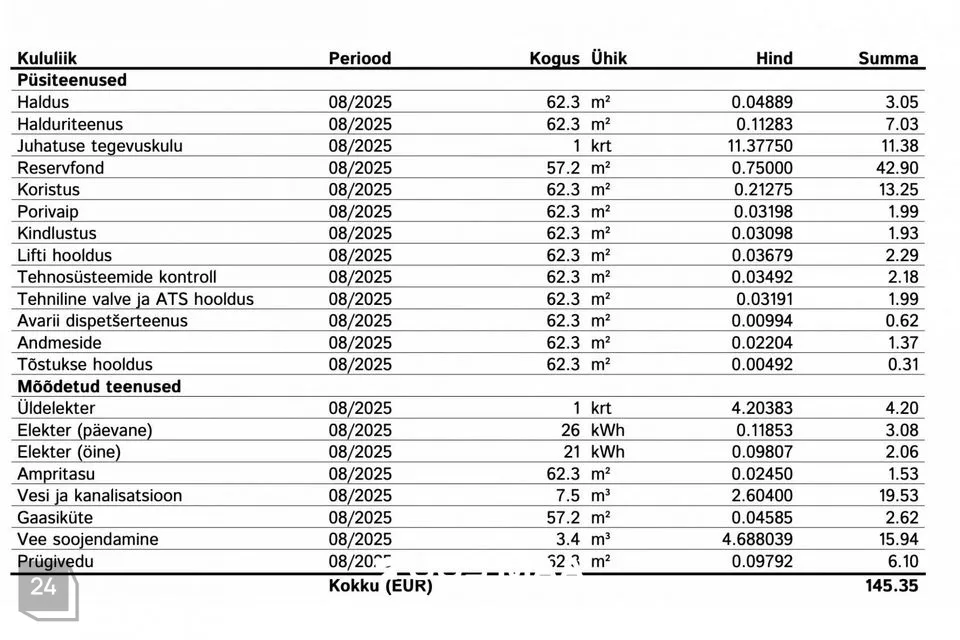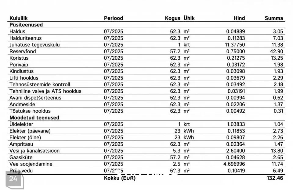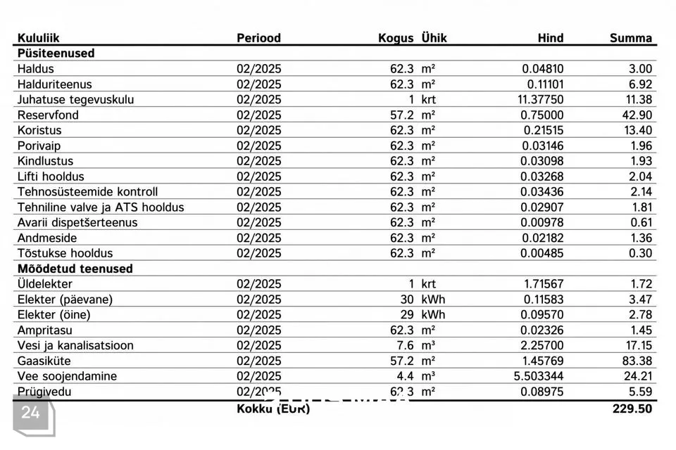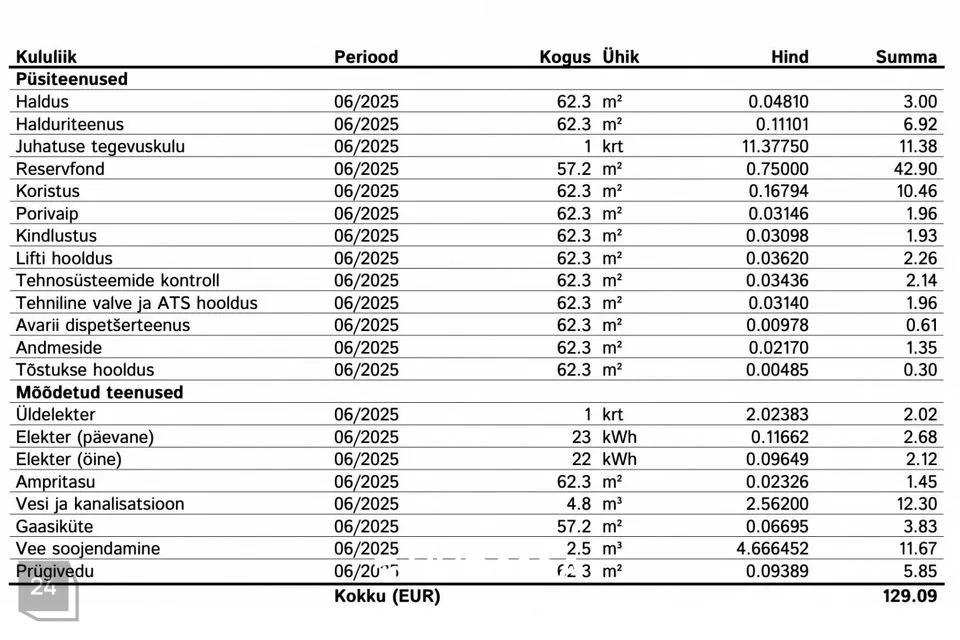 Suvised kommunaalarved on seni olnud ca 130 eurot ning talvised kuni 230 eurot. Pildid kommunaalarvetest on lisatud kuulutuse fotode juurde.