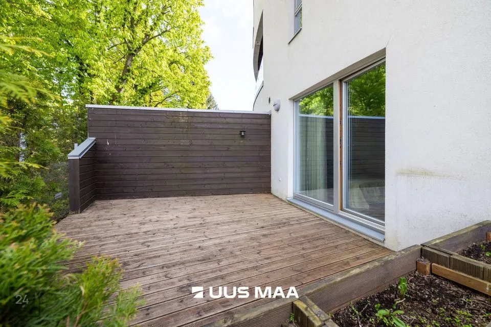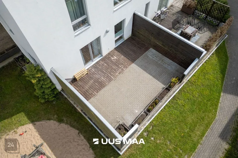 See ilus 1. korruse korter on väga hea planeeringuga ning sobib suurepärase neile peredele, kes otsivad omale kodu, mis ei oleks lihtsalt tavaline korter vaid rohkem ridaelamu tüüpi lahendus, kus on olemas ka suur terrass ja mõnus hoov. Ja sellel korteril ei ole mitte 1 vaid suisa kaks suurt terrassi - magamistoas olevale terrassile paistab hommiku- ning elutoa juures olevale terrassile õhtupäike.